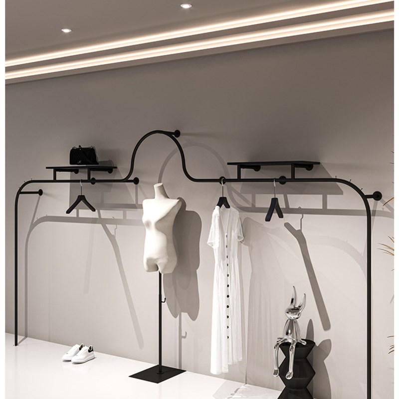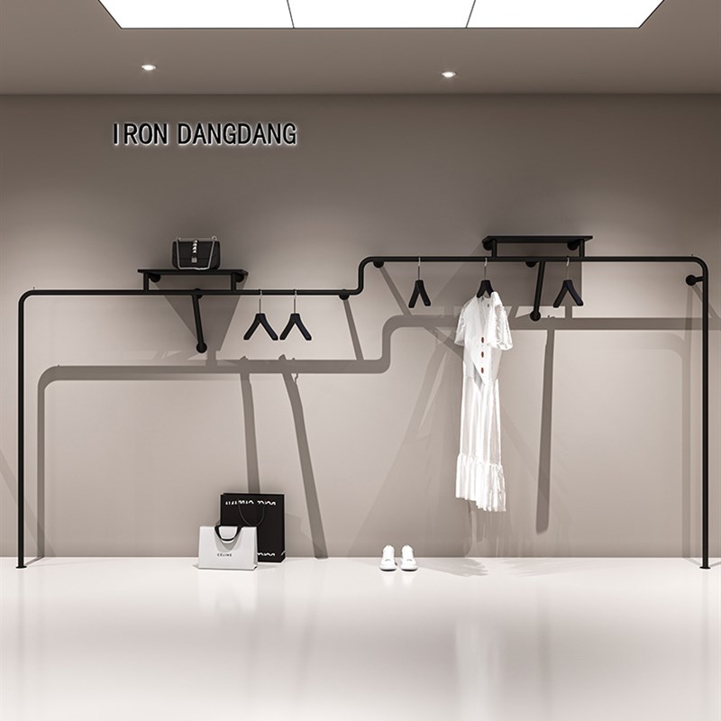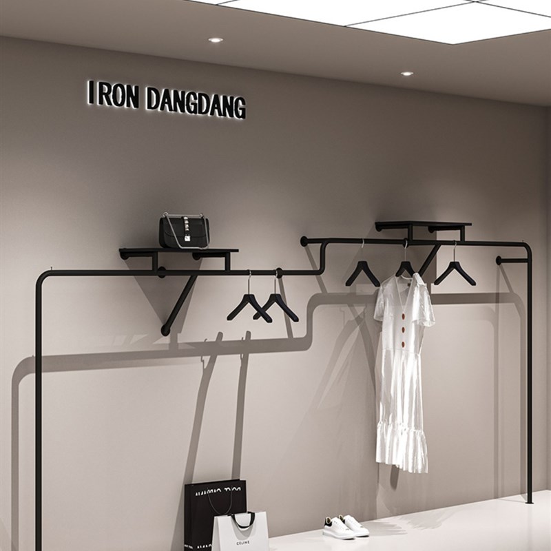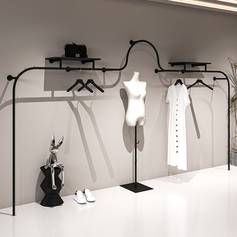 服装店上墙异型展示架挂衣架网红哑光黑陈列架墙上壁挂货架新款