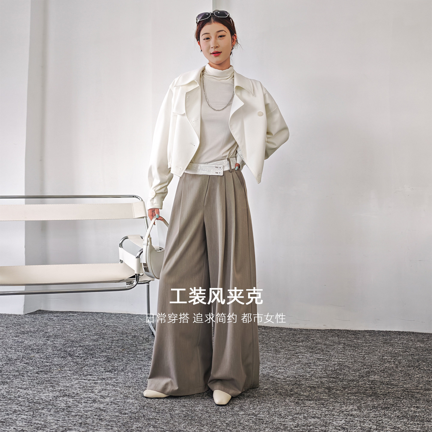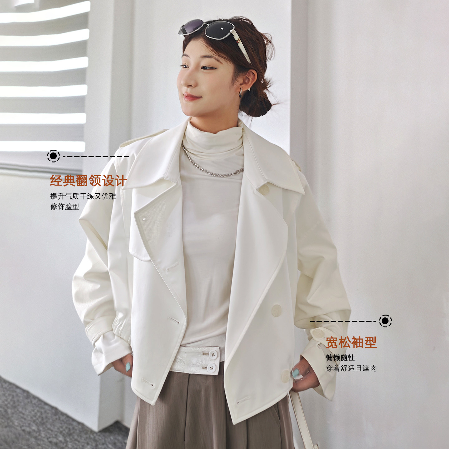 短款肌理感风衣夹克外套女秋季通勤英伦洋气气翻领双排扣工装上衣