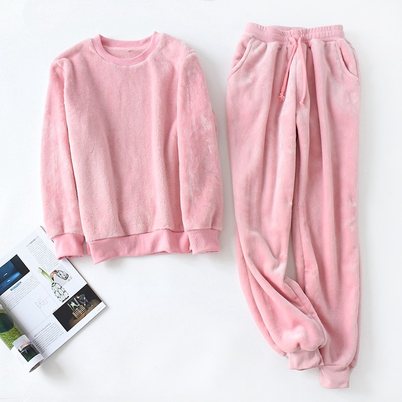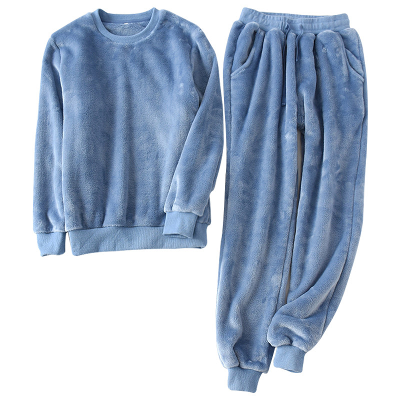 情侣保暖束脚收口珊瑚绒套头睡衣