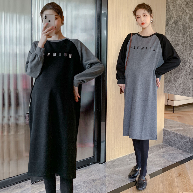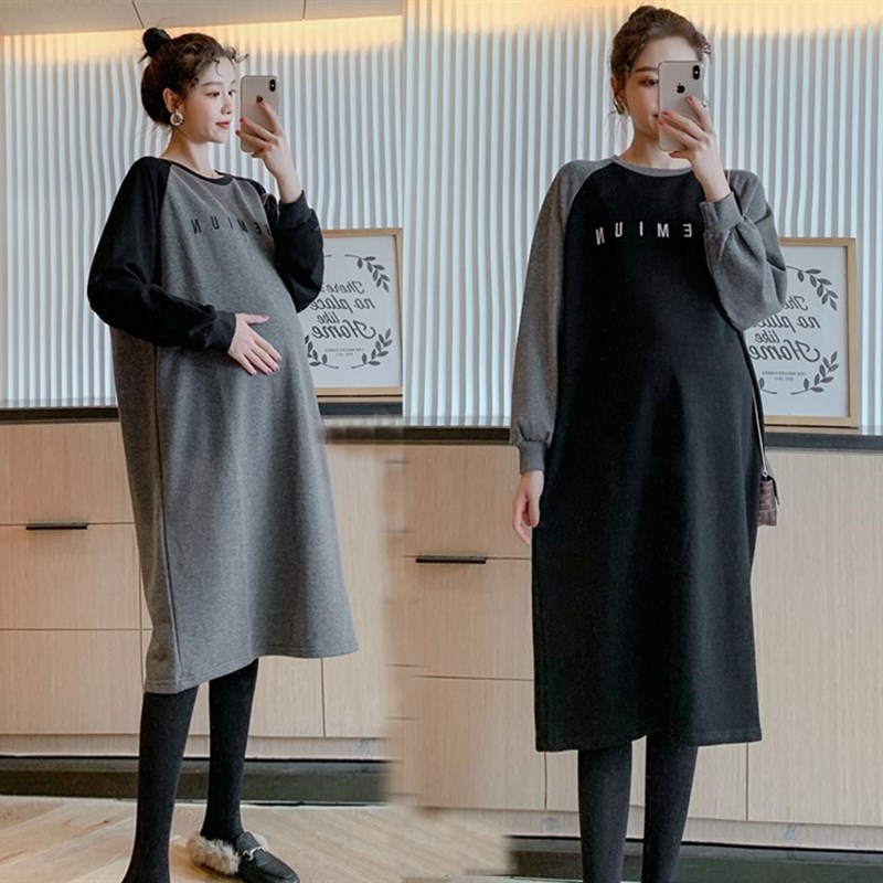大码孕妇卫衣连衣裙秋装套装中长款女胖妹妹长袖T恤宽松X减龄200