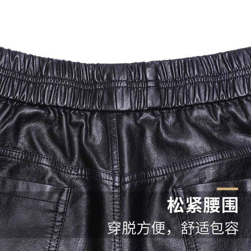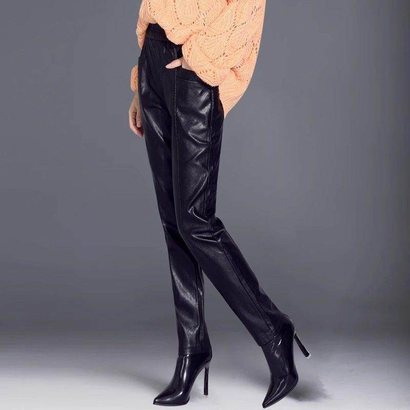 黑色皮裤女春秋新款加厚大码宽松萝卜裤小个子外穿小脚靴裤哈伦裤
