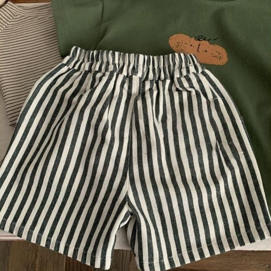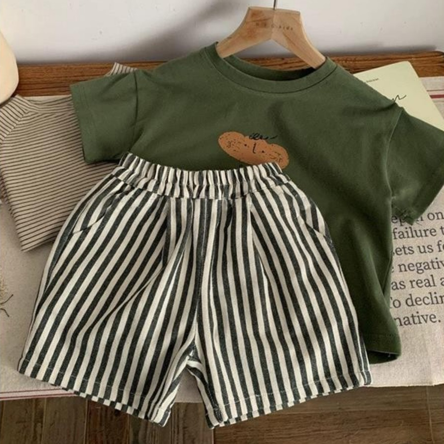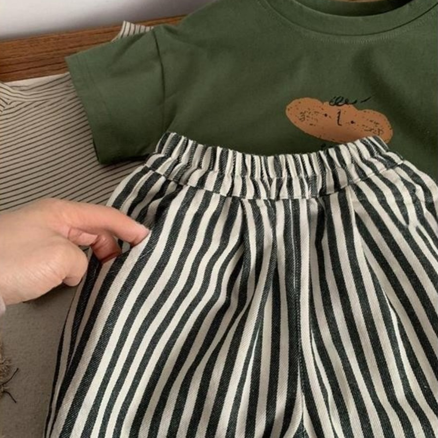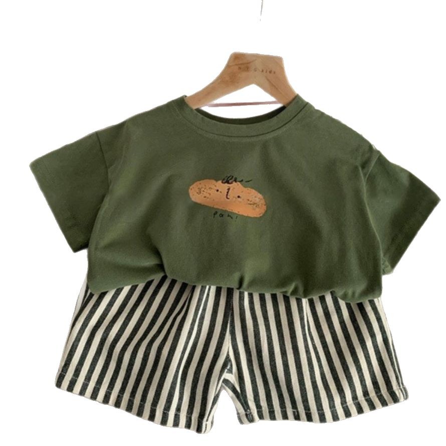 男女童夏季新款纯棉短袖套装中小童洋气上衣宝宝条纹五分裤两件套