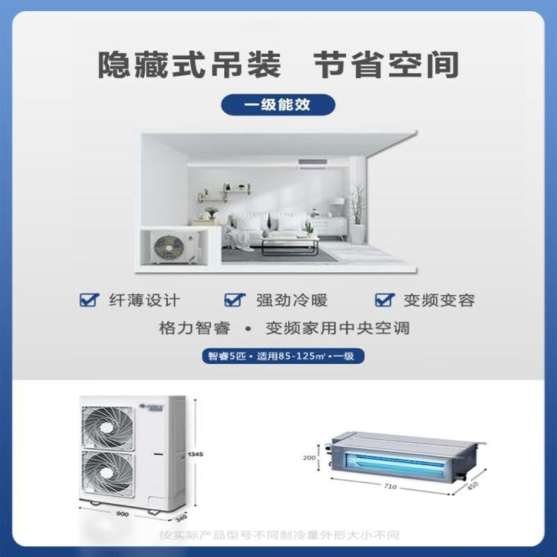 格力智睿多联机5匹一拖四中央空调一级能效省电静音风管式一拖三
