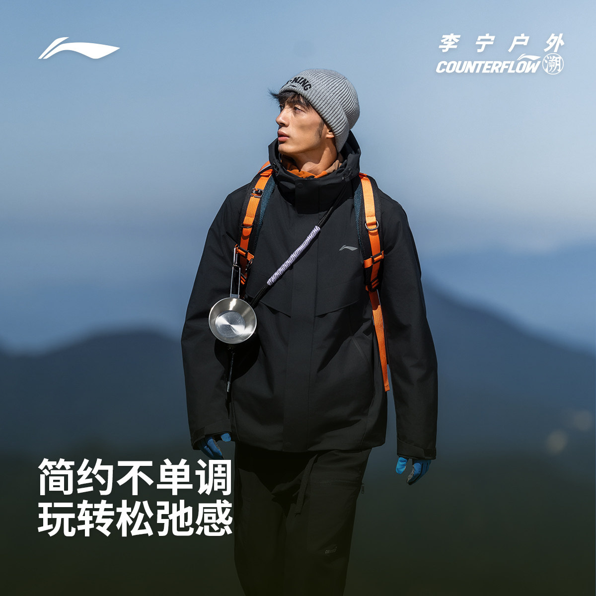 李宁户外CF溯丨珑壳三合一外套羽绒内胆男士冬季新款保暖软壳外套