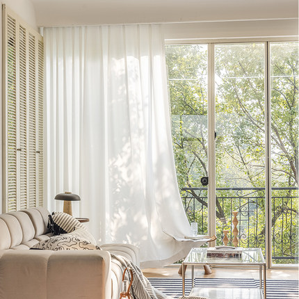 窗帘纱帘幻影纱透光不透人窗纱飘窗阳台客厅白色白纱防猫抓纱加厚
