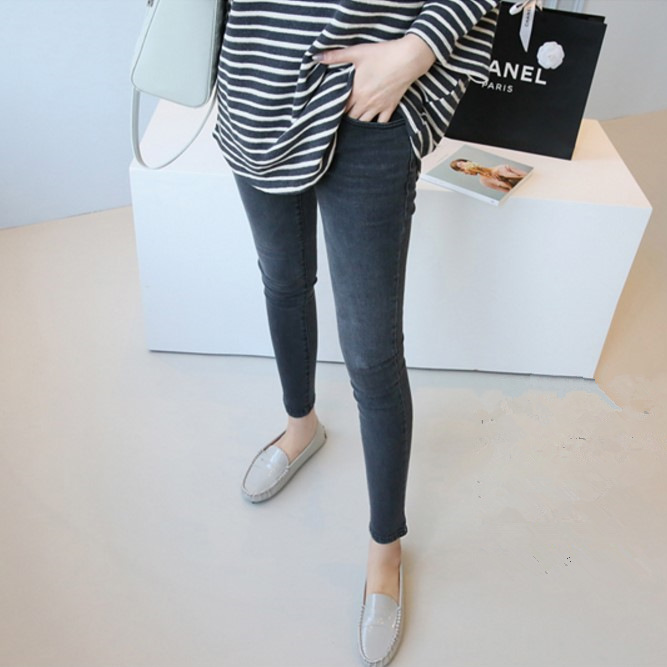 孕妇装春秋季2025秋装牛仔裤韩版潮妈毛边九分小脚铅笔托腹打底裤