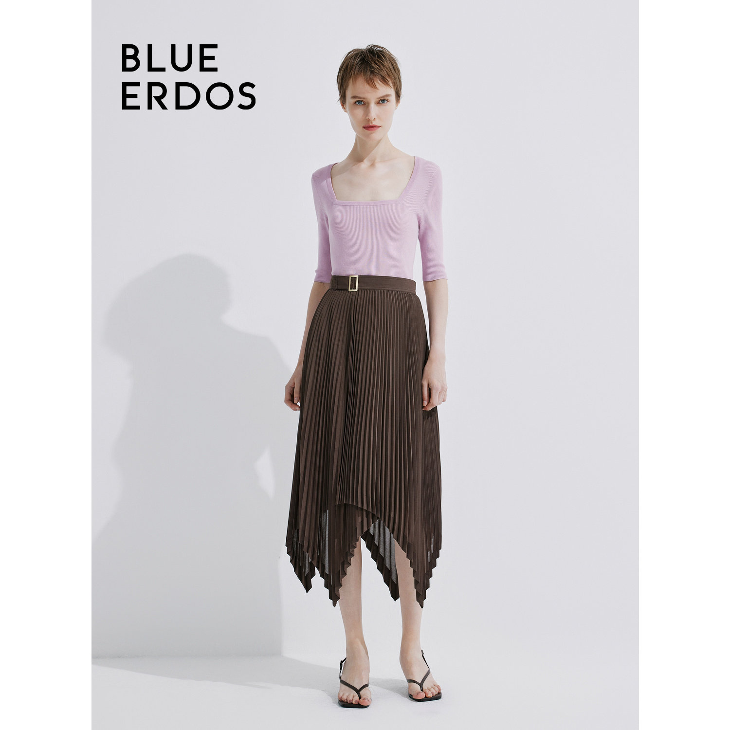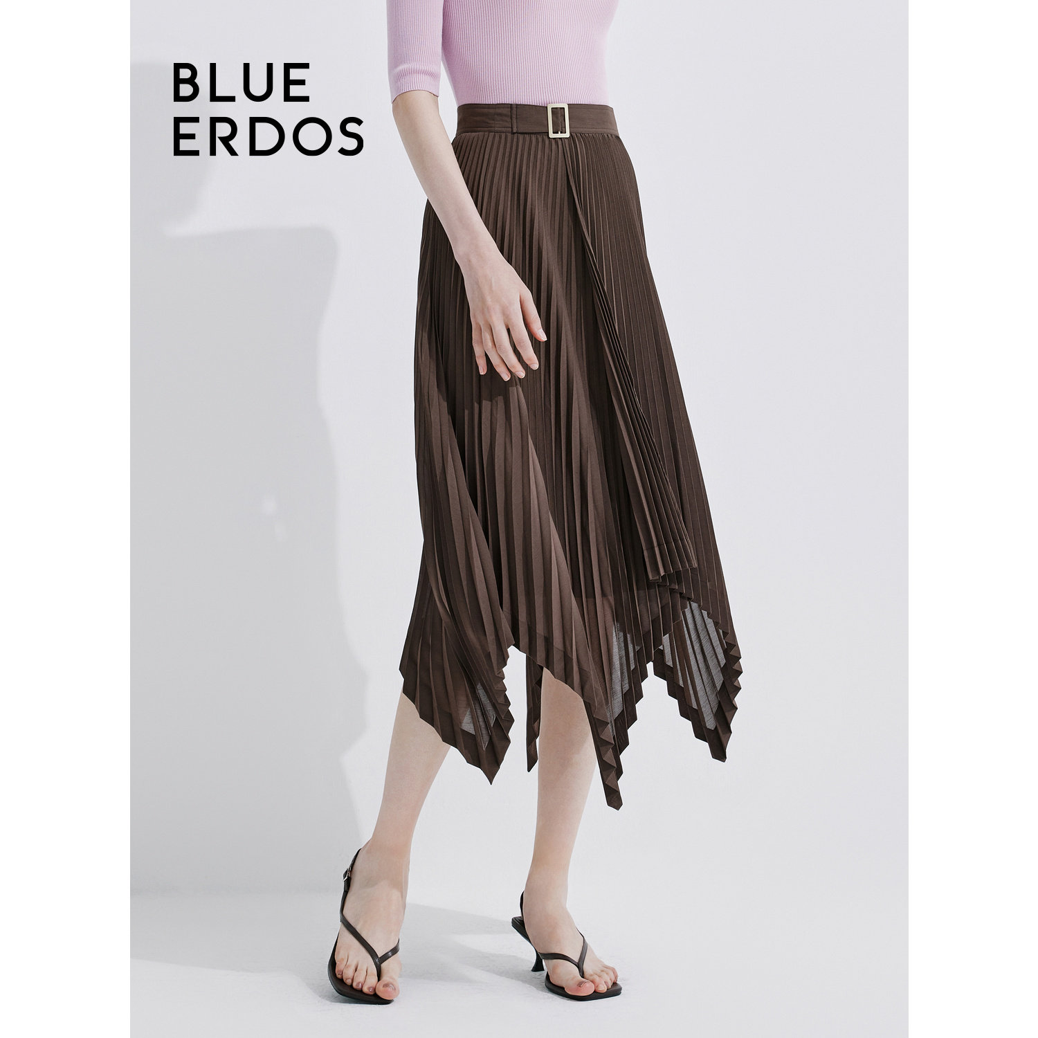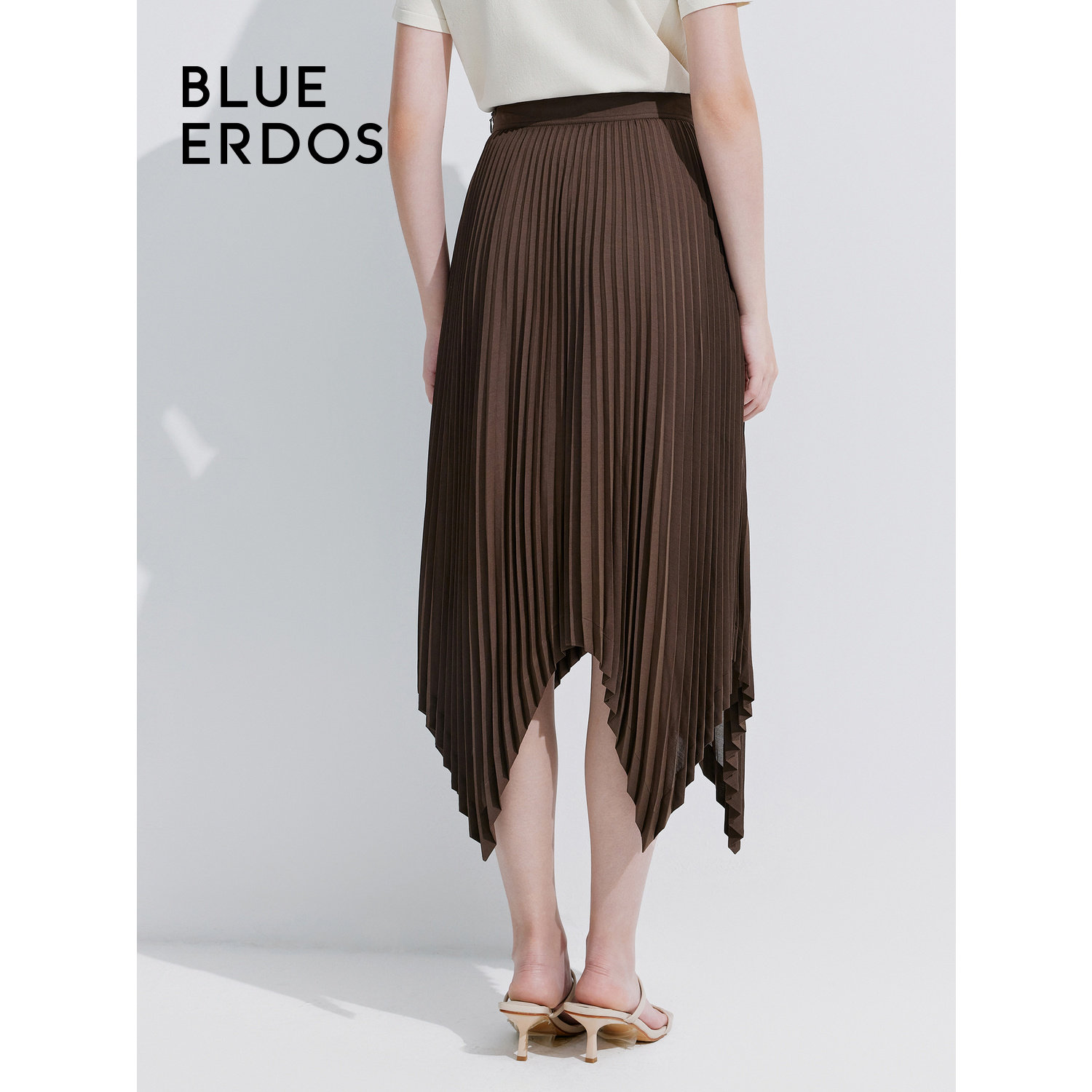 BLUE ERDOS气质不规则百褶裙醋纤混纺半身裙B245M0012