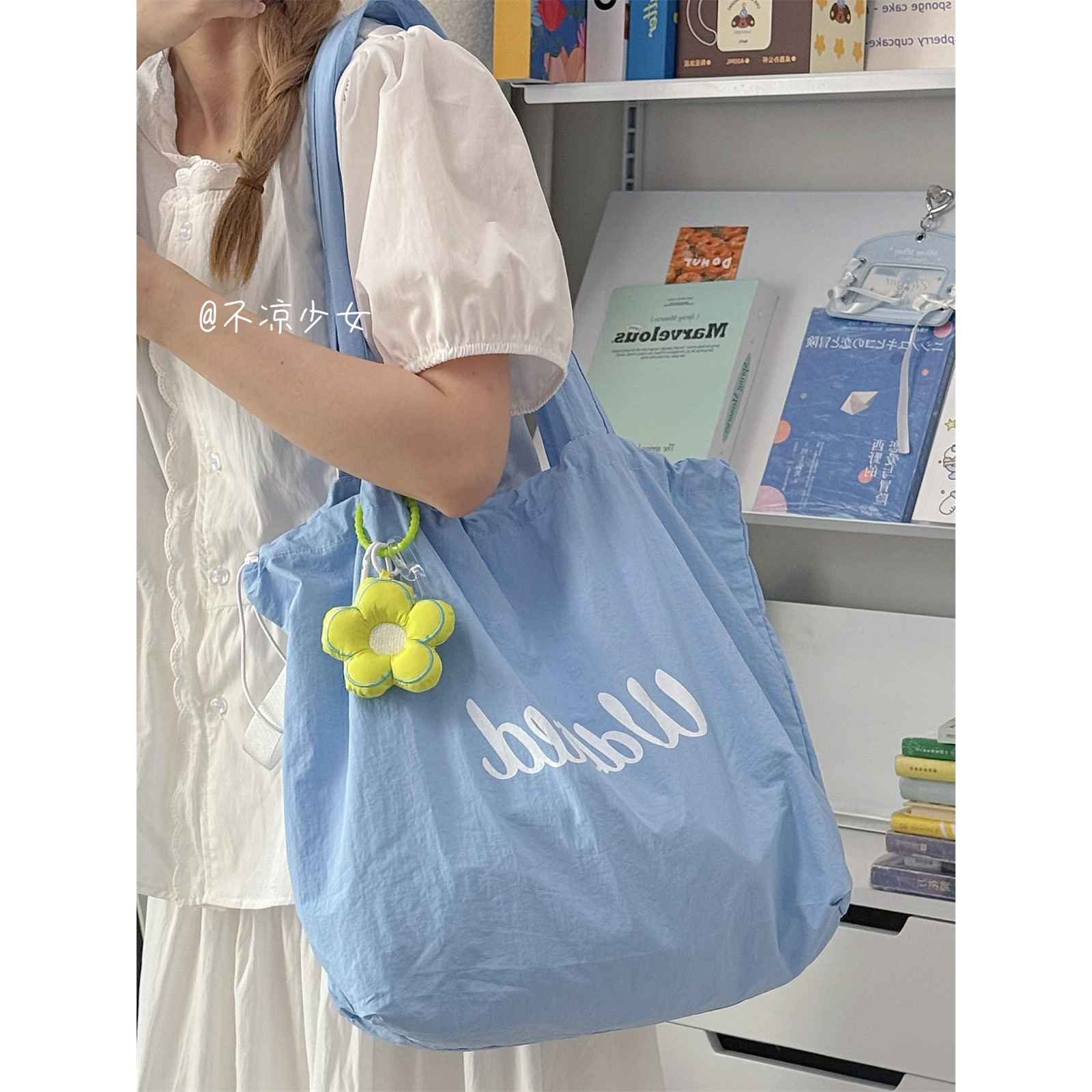 字母手提单肩包韩系ins慵懒风大容量帆布包袋文艺少女束口托特包