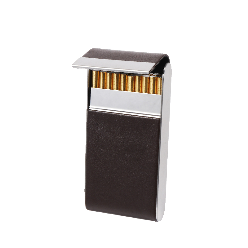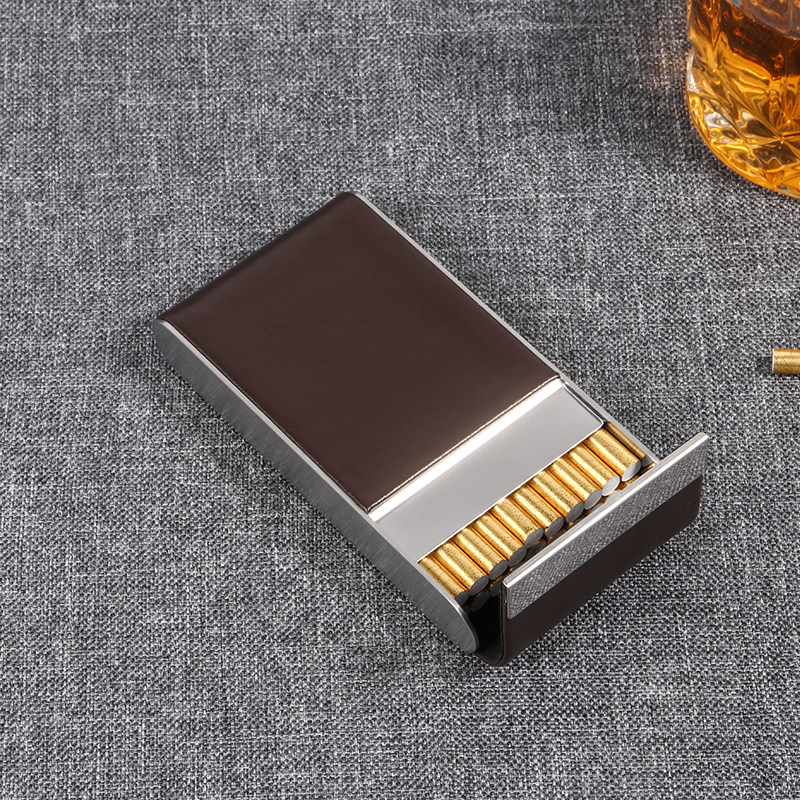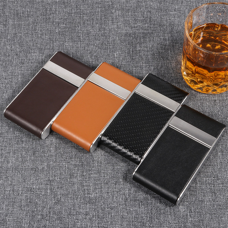 高档烟盒5.5mm细支20支装 男女士不锈钢超薄便携磁吸翻盖皮质烟盒
