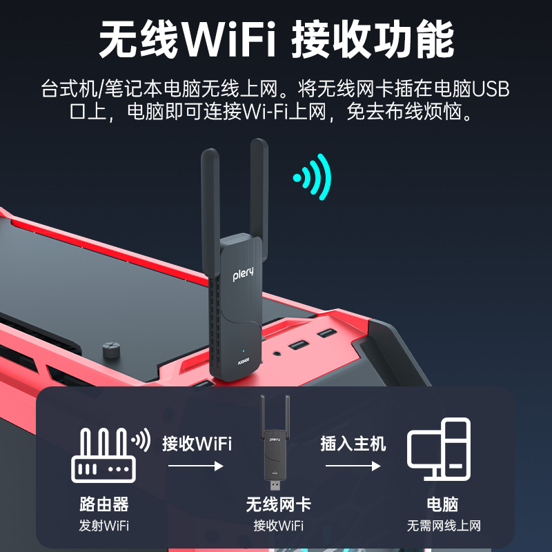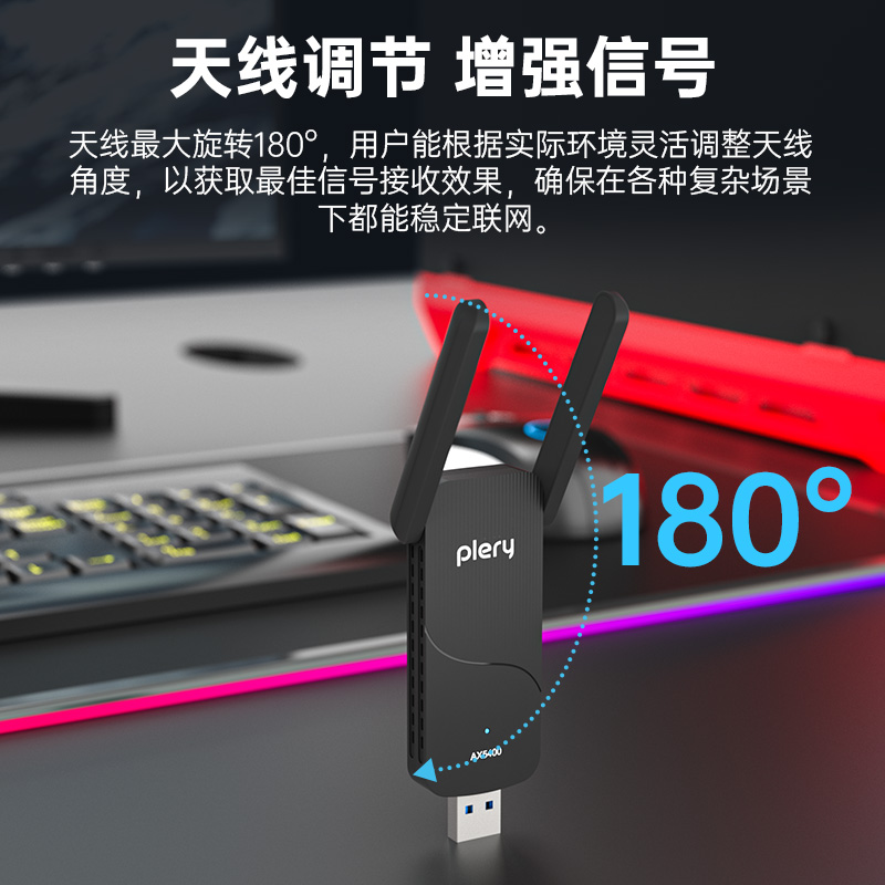PLERY免驱wifi6无线网卡5G双频千兆AX5400台式机笔记本电脑wifi接收器电竞外置USB热点发射器蓝牙二合一U168
