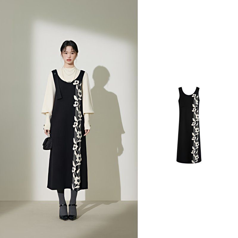 背心裙针织衫两件套装连衣裙女2025秋冬新款法式显瘦长背带裙毛衣