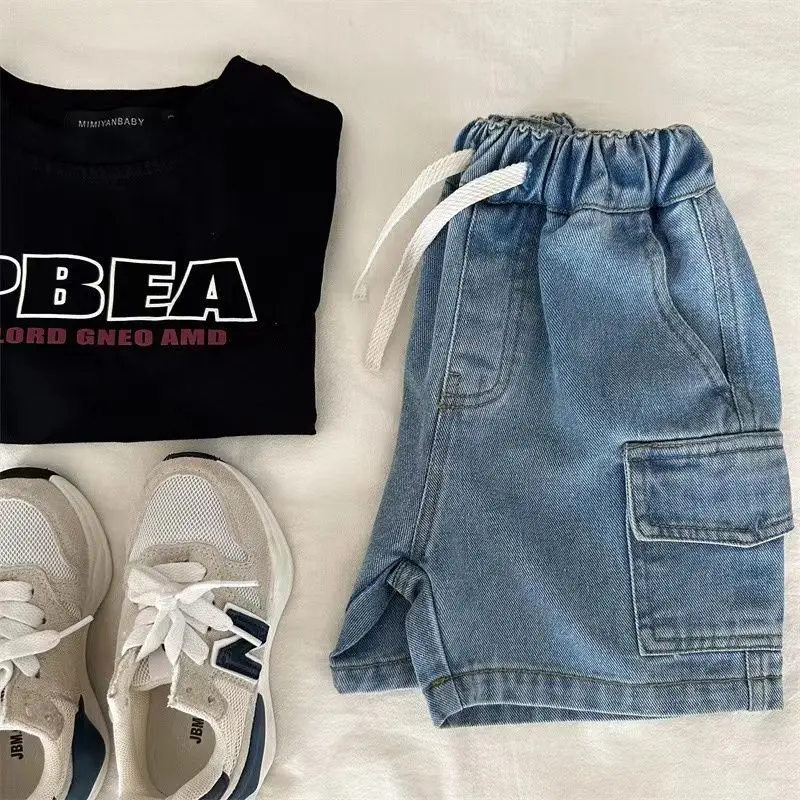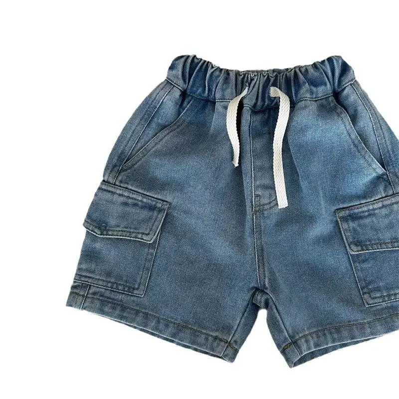 儿童短裤2025夏季新款男女童纯色口袋工装短裤宝宝牛仔五分裤潮