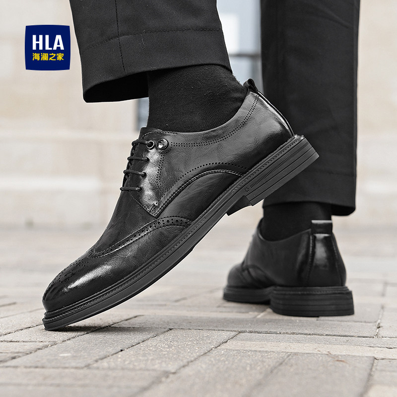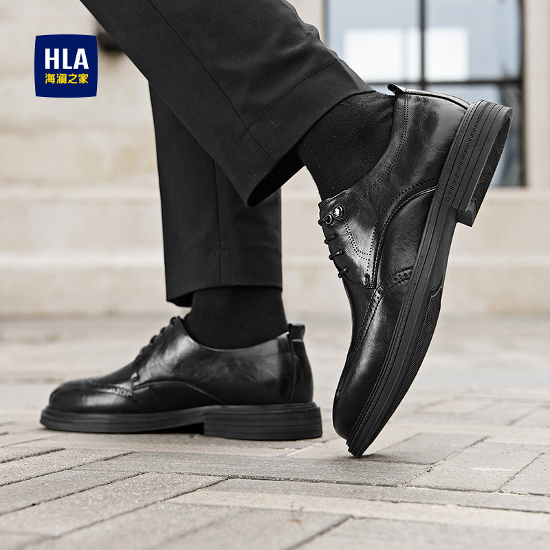 HLA/海澜之家男鞋父亲鞋春秋商务正装布洛克鞋尖头增高结婚皮鞋