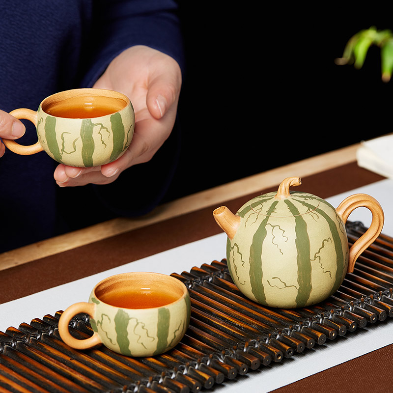 宜兴紫砂壶西瓜仿生壶降坡泥名家纯全手工泡茶壶家用功夫茶具套装