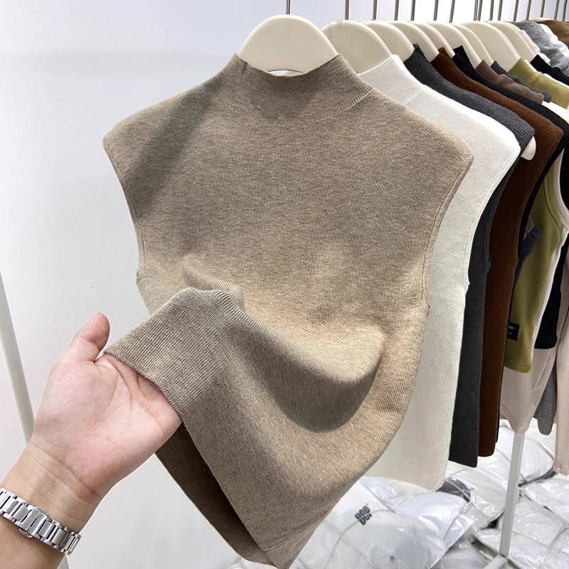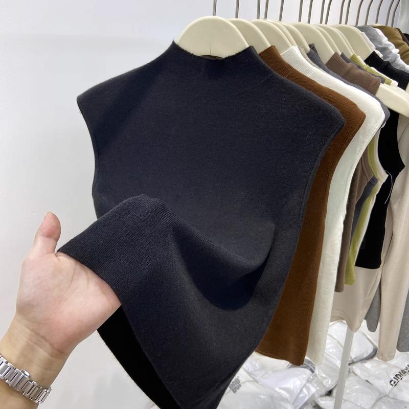 半高领针织无袖背心女秋冬修身显瘦立领无袖打底衫气质西装1021z