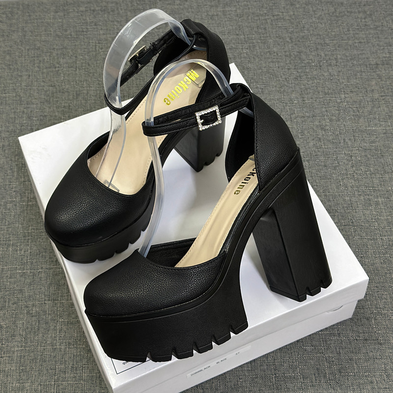 13cm小个子粗跟厚底防水台女单鞋玛丽珍超高跟鞋欧美夜店演出鞋子