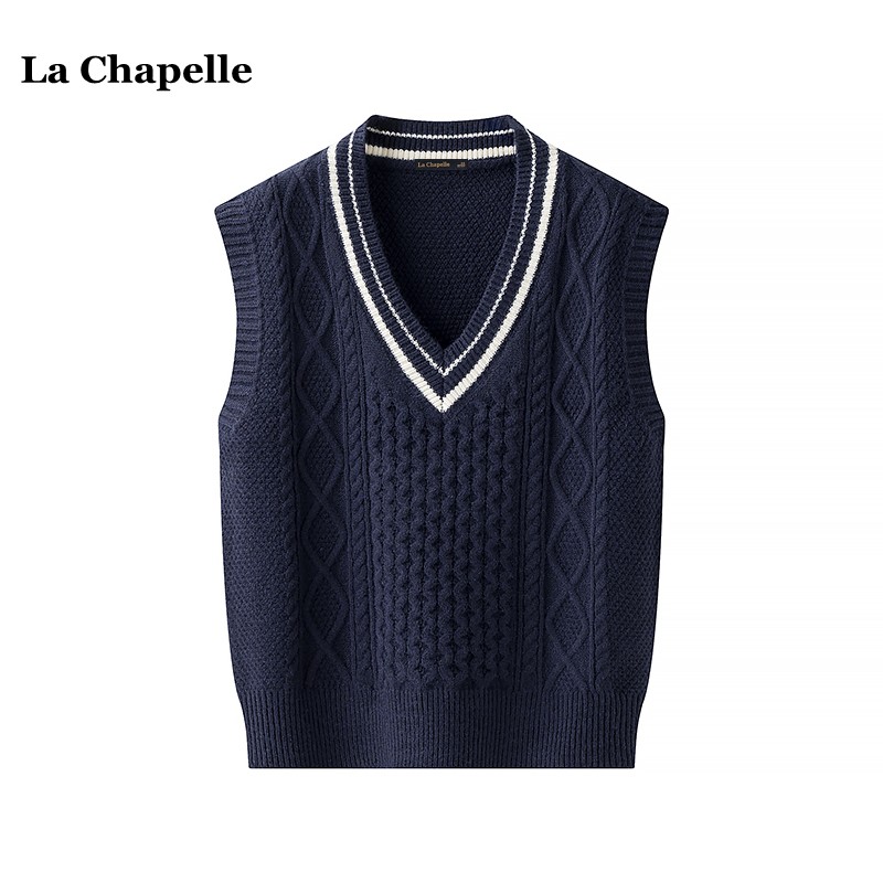 拉夏贝尔/La Chapelle学院风减龄麻花马甲女春季新款叠穿坎肩背心