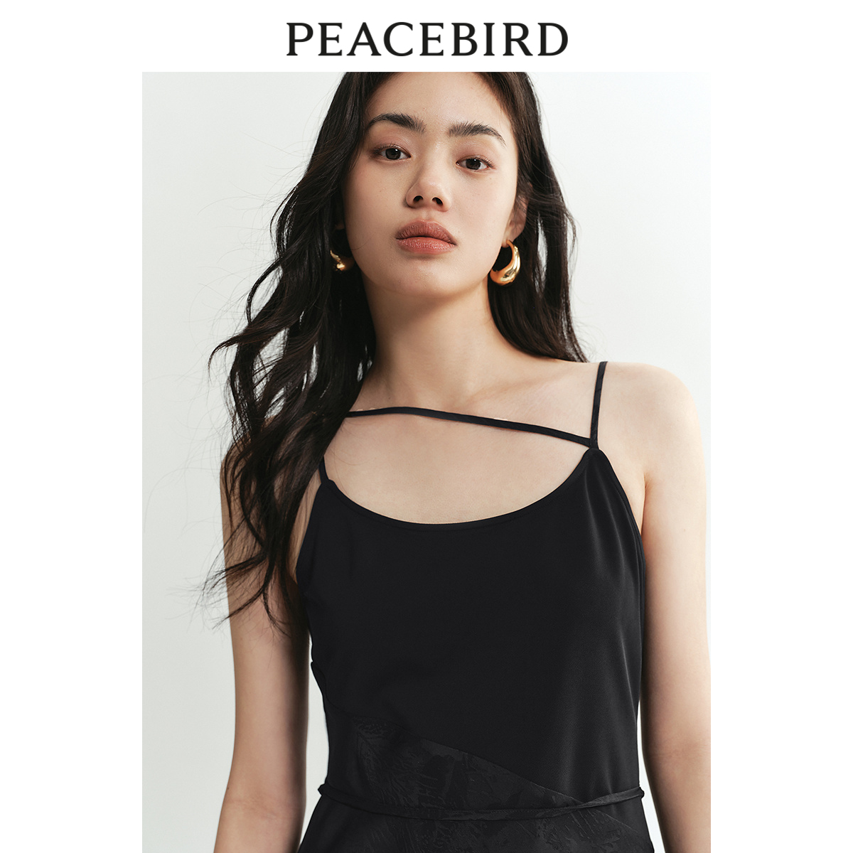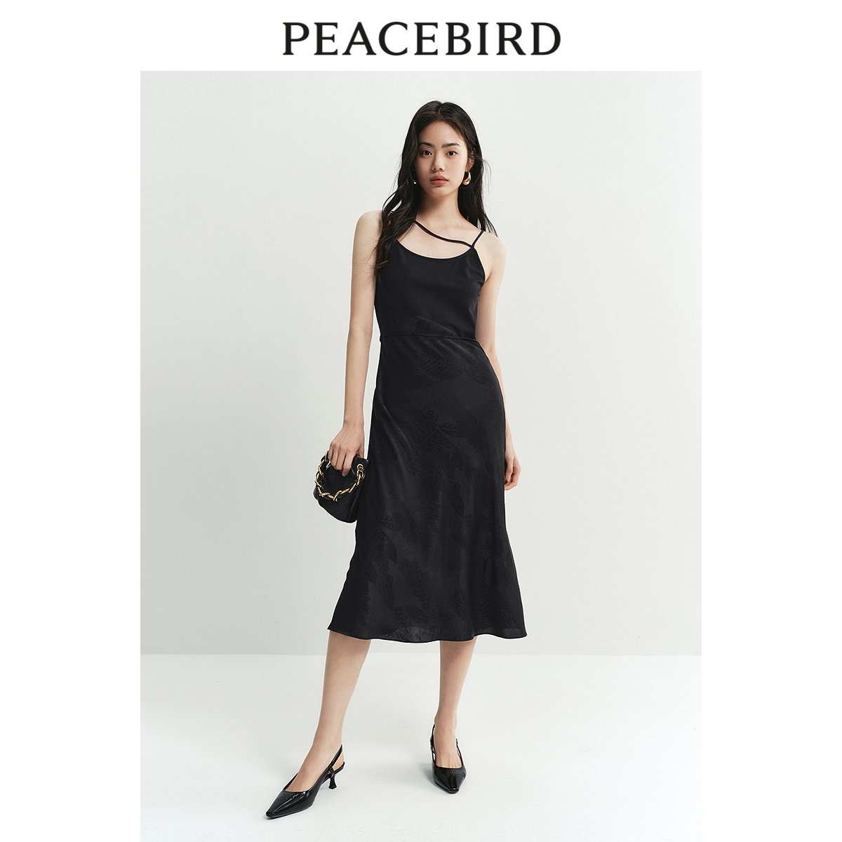 太平鸟女装吊带连衣裙秋新款别致收腰小裙子时尚气质提花长裙洋气