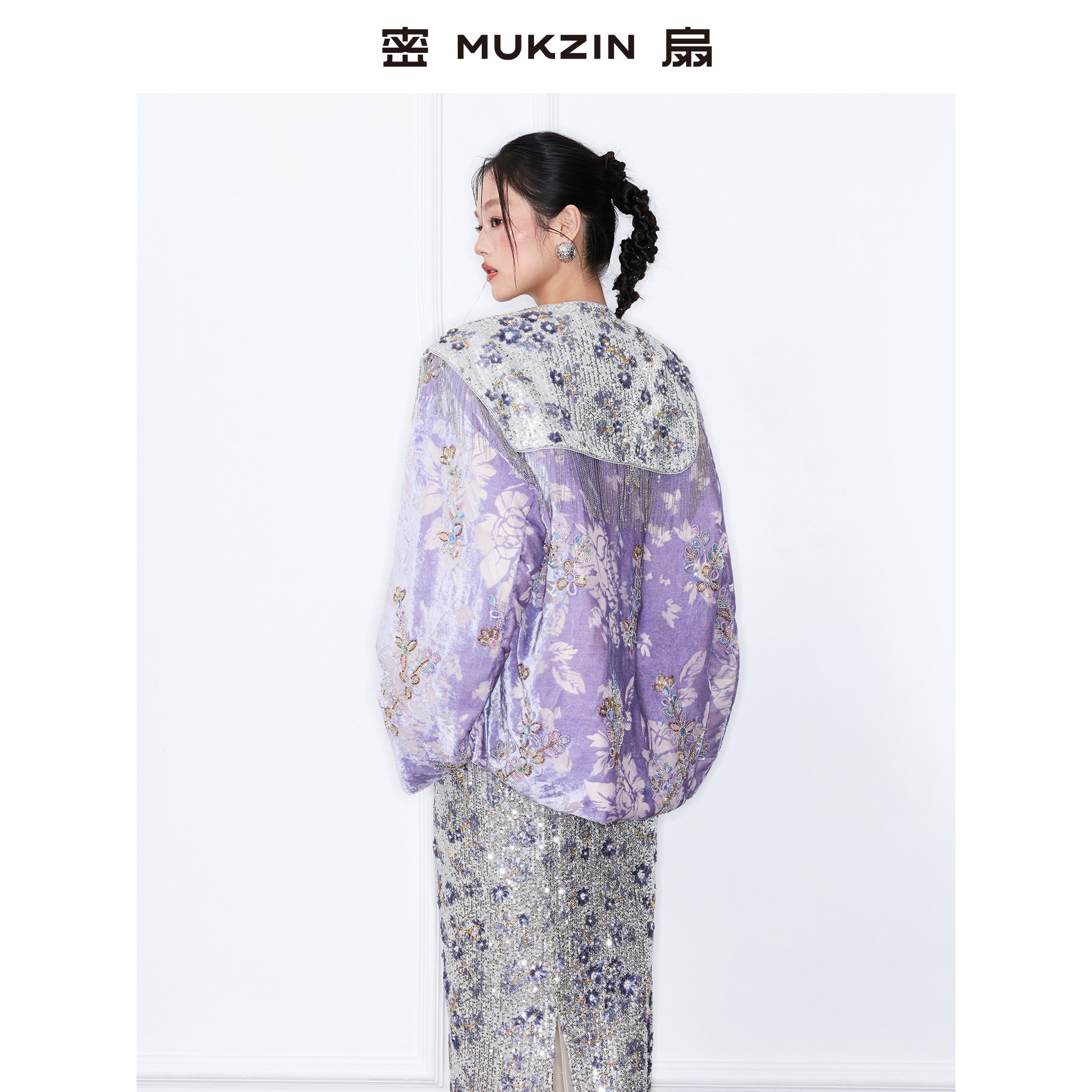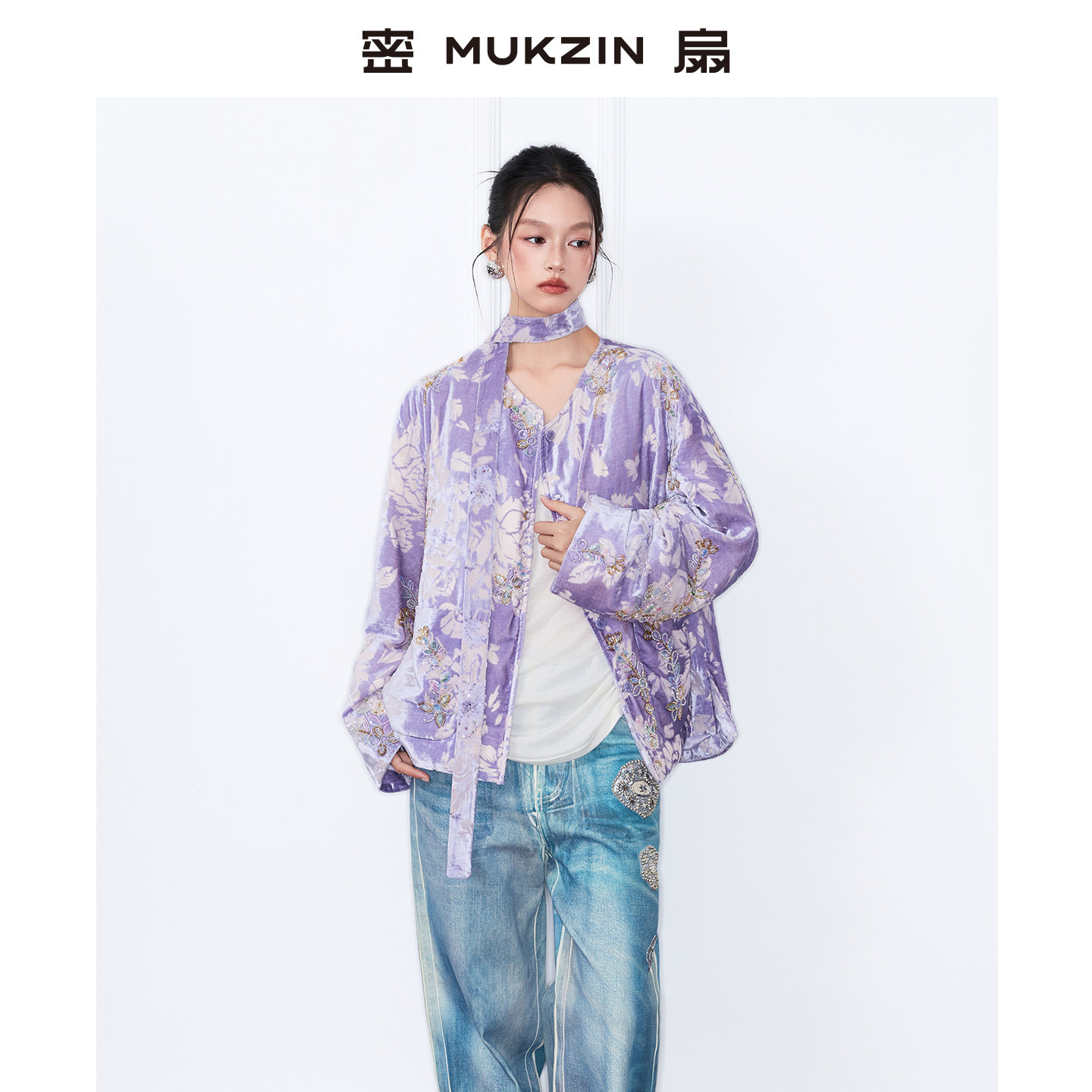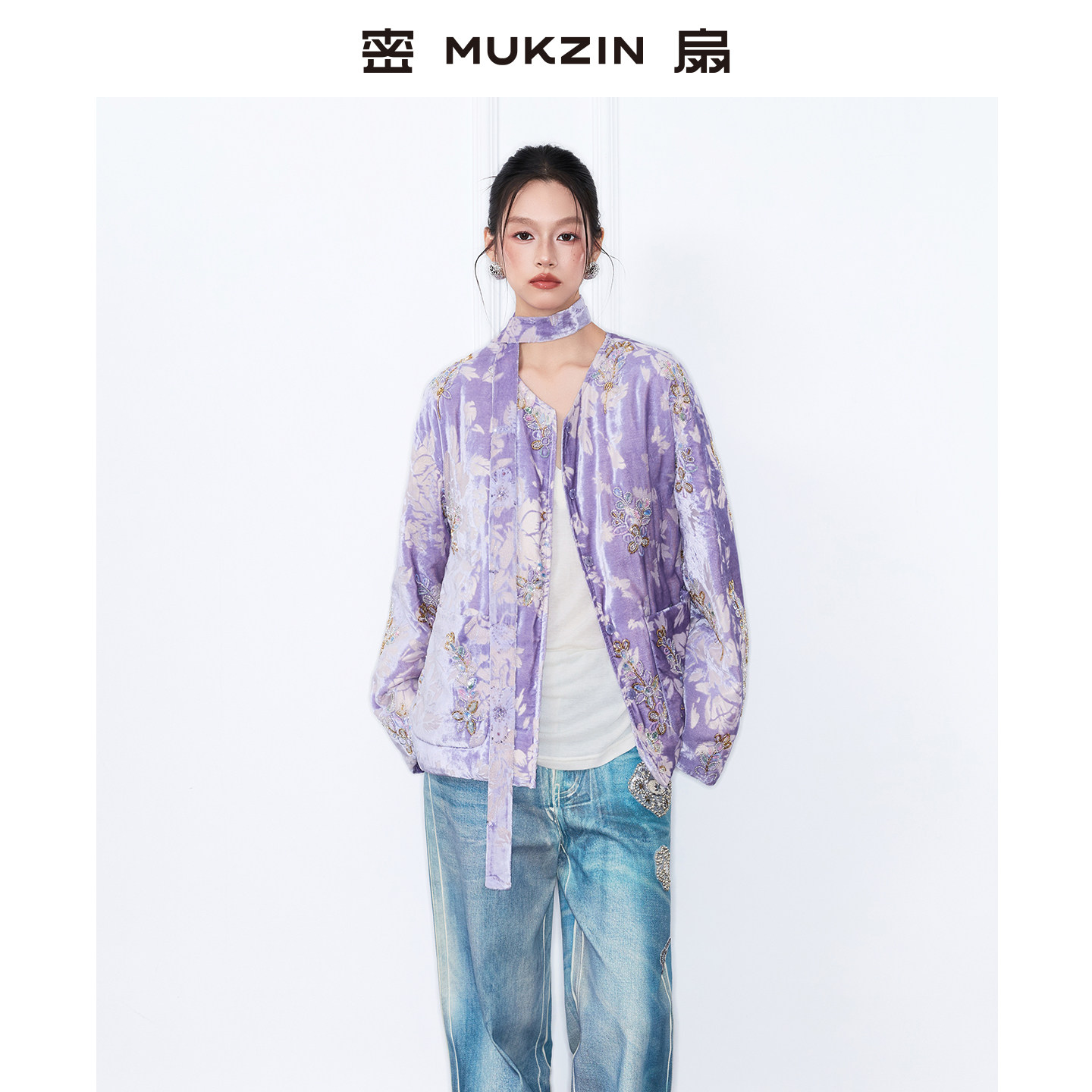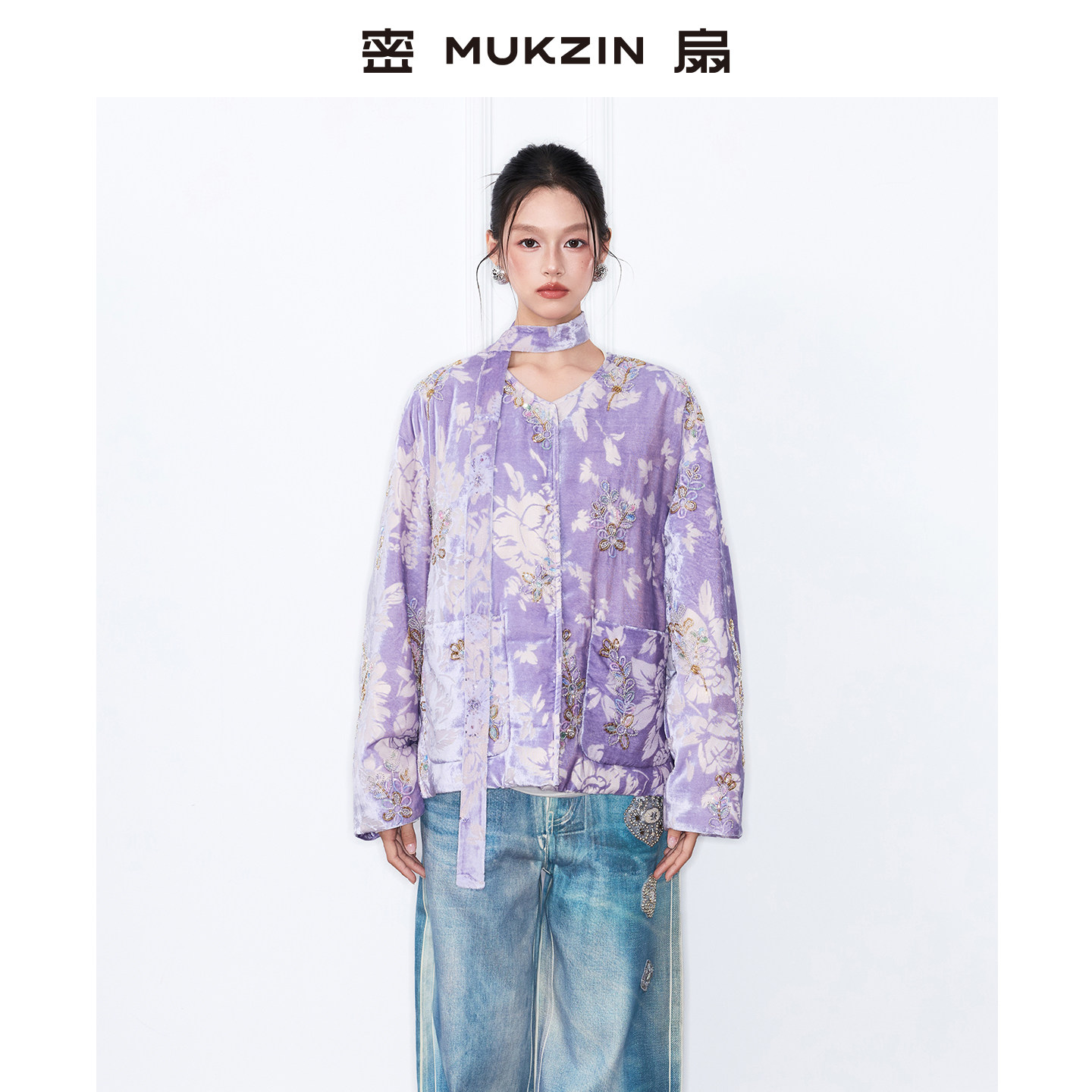 密扇2025冬新款复古丝绒新中式刺绣印花重工上衣轻羽绒服短款外套