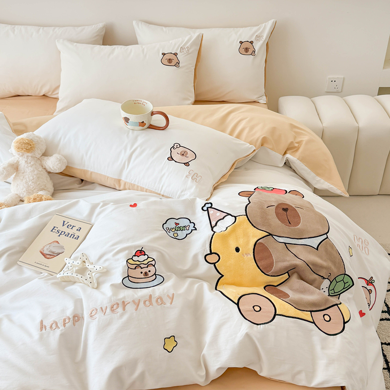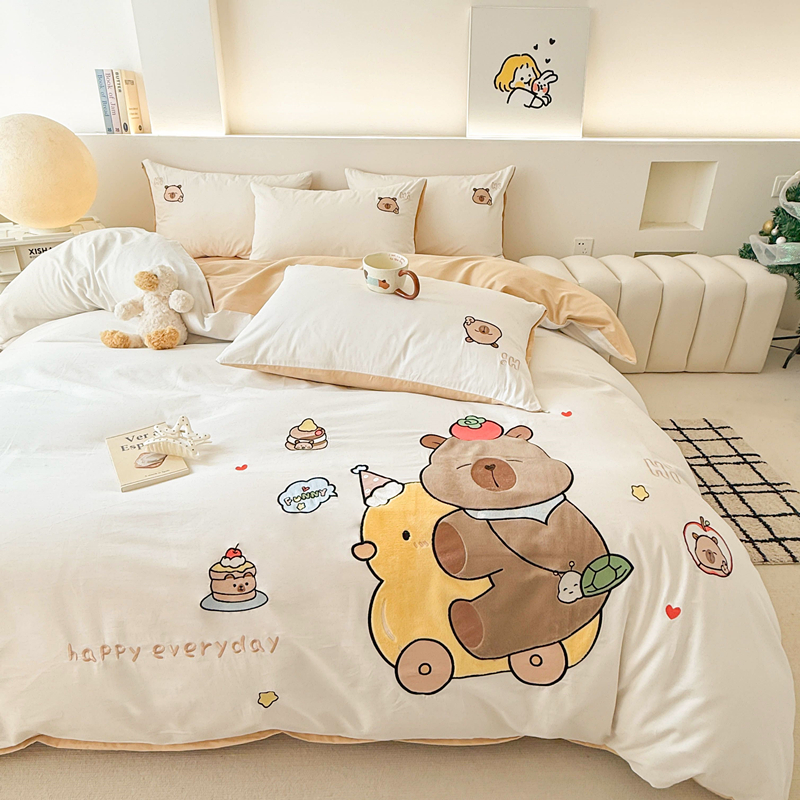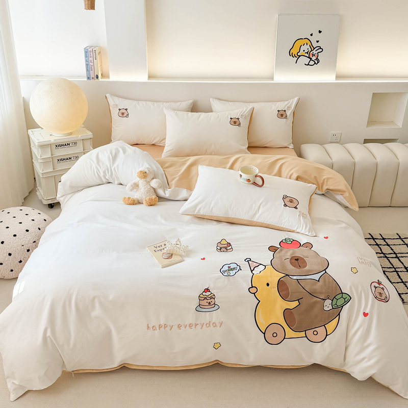 A类母婴级100全棉四件套卡通可爱纯棉被套儿童床单人三件套床笠款