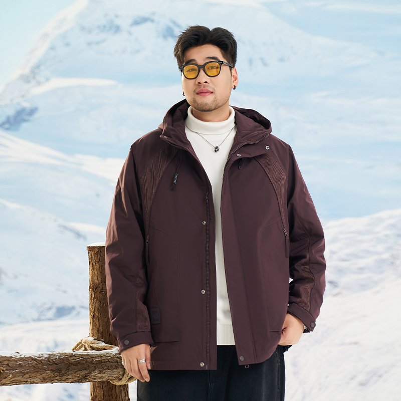 黑劲大码男装连帽防风抗寒棉衣冬季新款肥佬男户外保暖锁温棉服