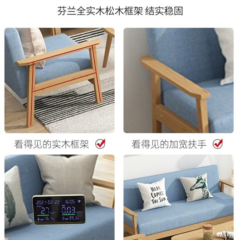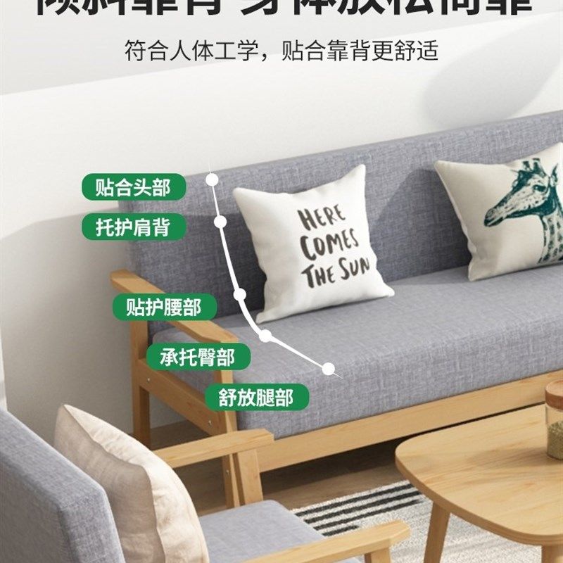 实木沙发茶几出租房人位小户型客厅现代布艺三人办公椅3