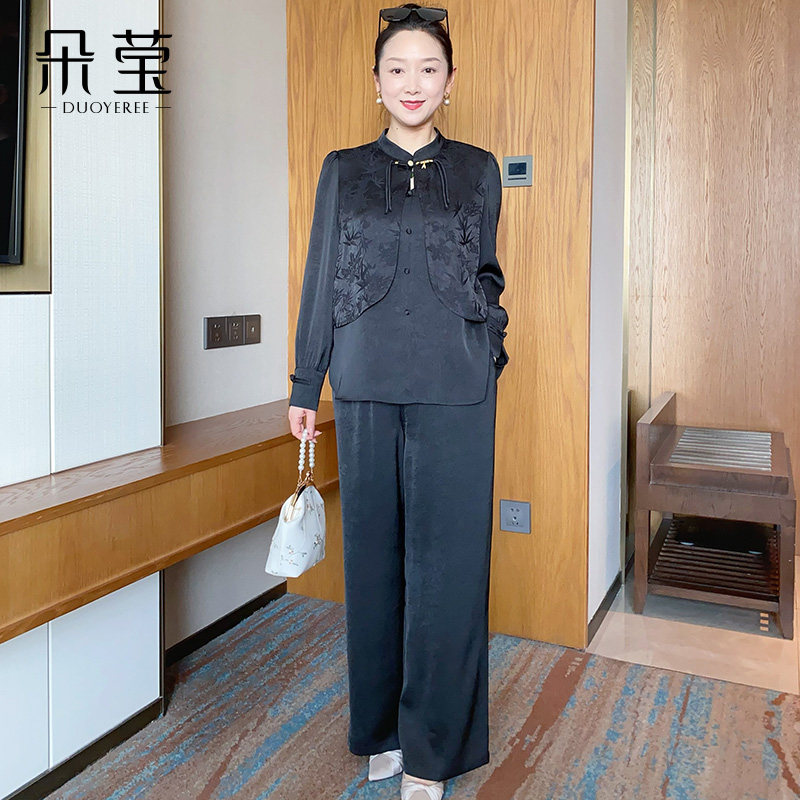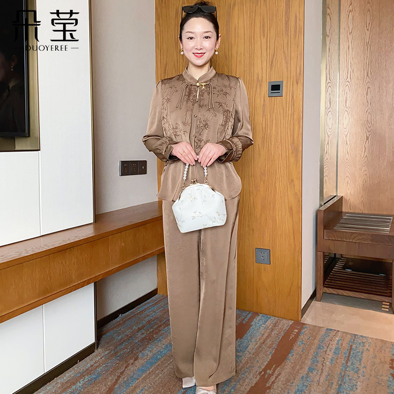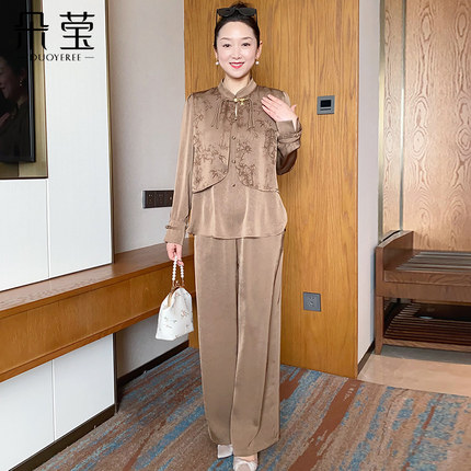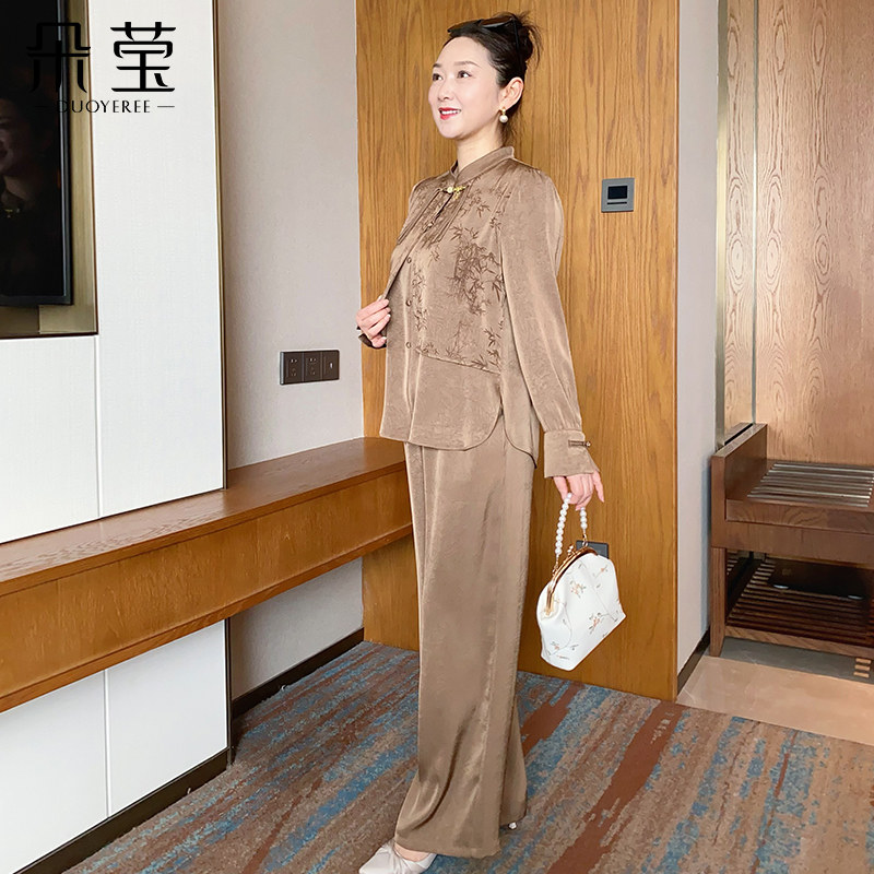 朵莹妈妈秋装新款套装中年女新中式上衣中老年人春秋季洋气两件套