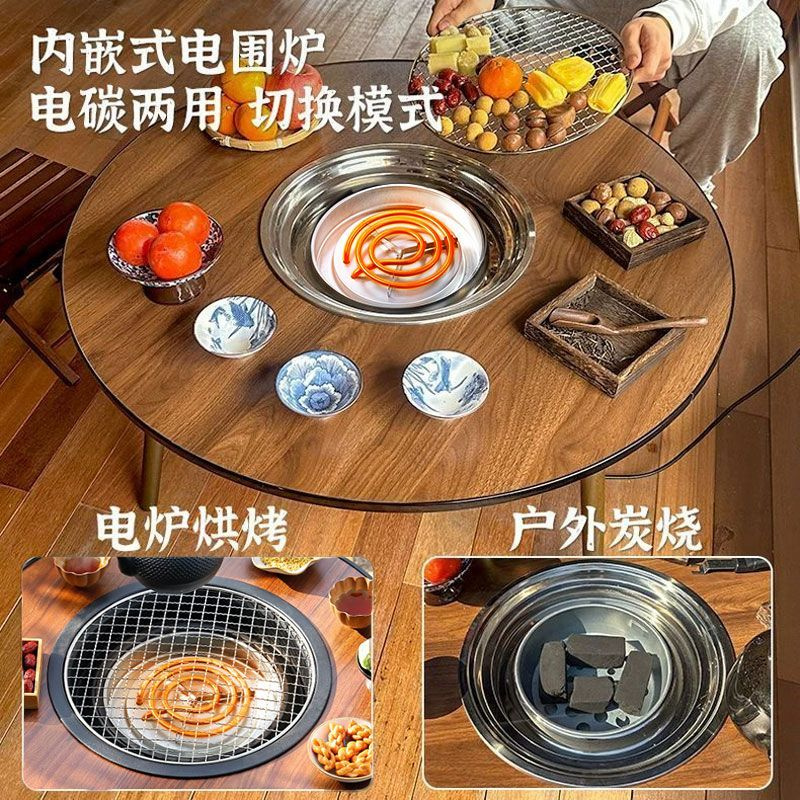 新款围炉煮茶桌嵌入式电围炉烧烤桌烤肉炉电碳两用室内桌子开口32