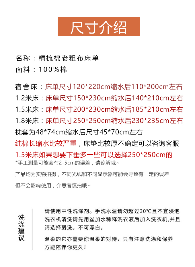 【清仓】纯棉老粗布床单加厚加密三件套被单单人学生宿舍单件