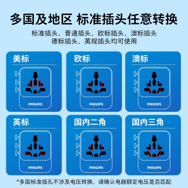 飞利浦转换插头全球通用英标欧标国际万能转换器日本香港旅行插座