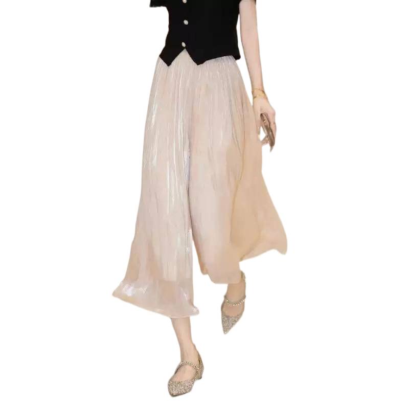 爆款女装流光纱八分裙裤女夏季2025新款小个子松紧高腰琉璃裙裤女