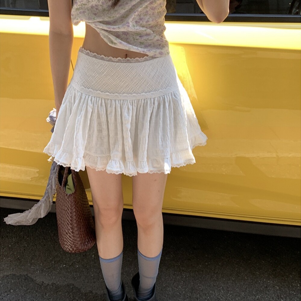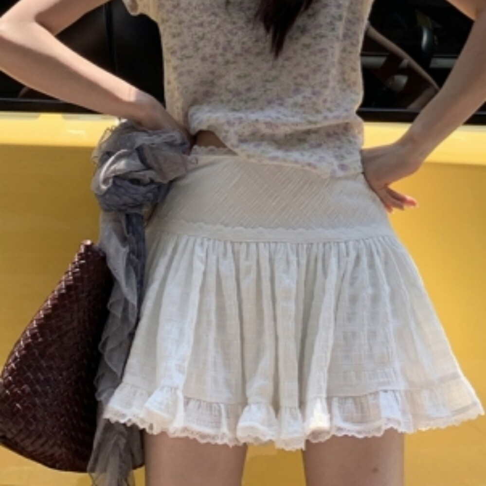 法式休闲芭蕾风蕾丝花边A字短裙女春秋内搭夏季白色蓬蓬半身裙裤