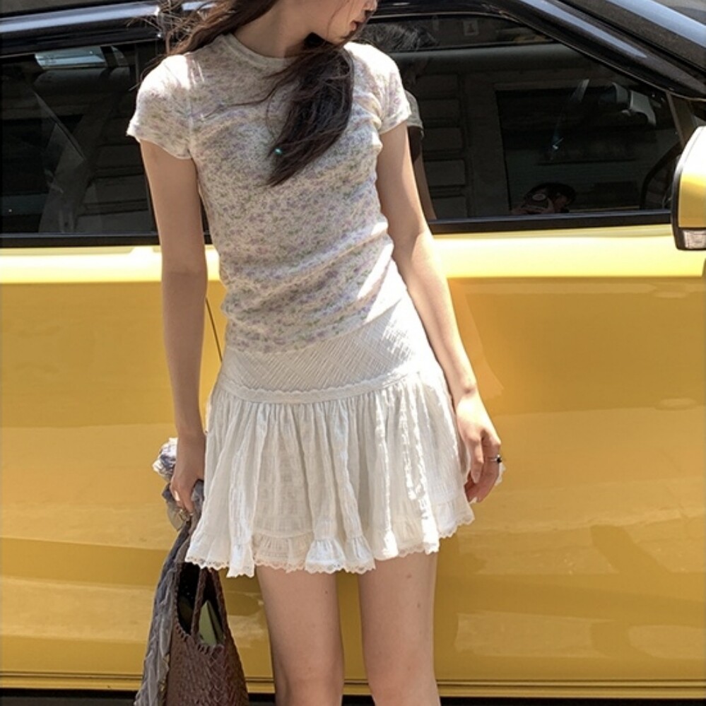 法式芭蕾风蕾丝花边A字短裙女