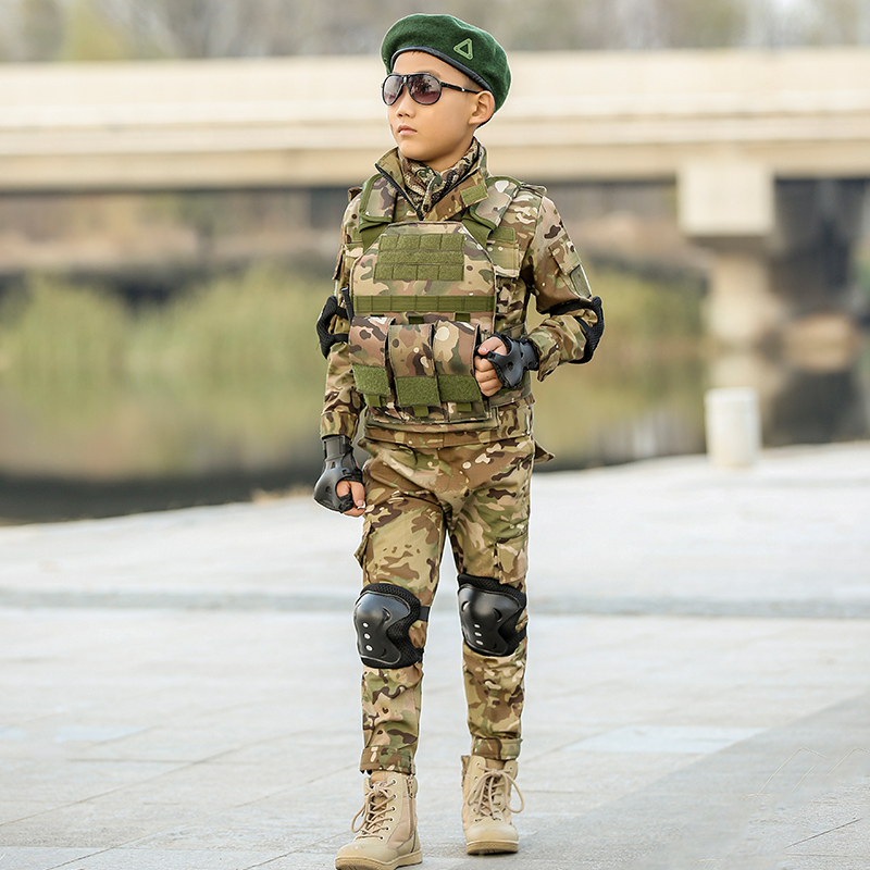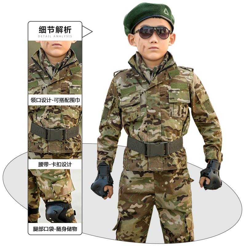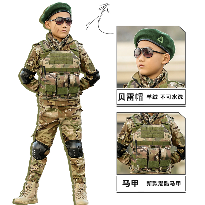 儿童迷彩服套装春秋季特种兵演出服男童羊绒贝雷帽女童长袖表演服