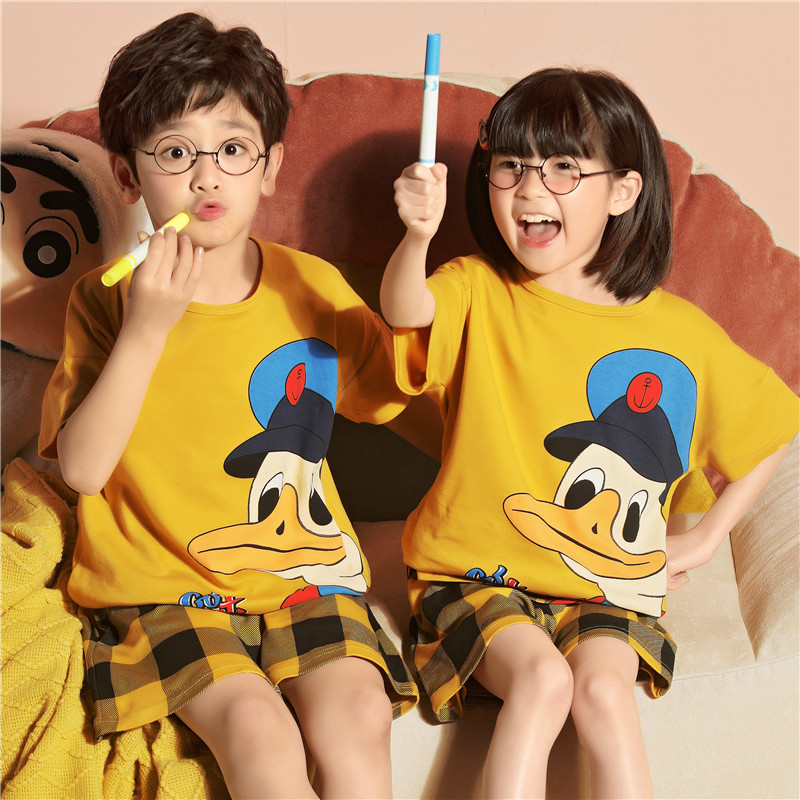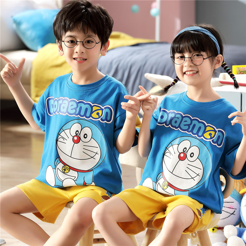 儿童睡衣男童夏季纯棉短袖薄款全棉卡通女童中大童男孩宝宝家居服