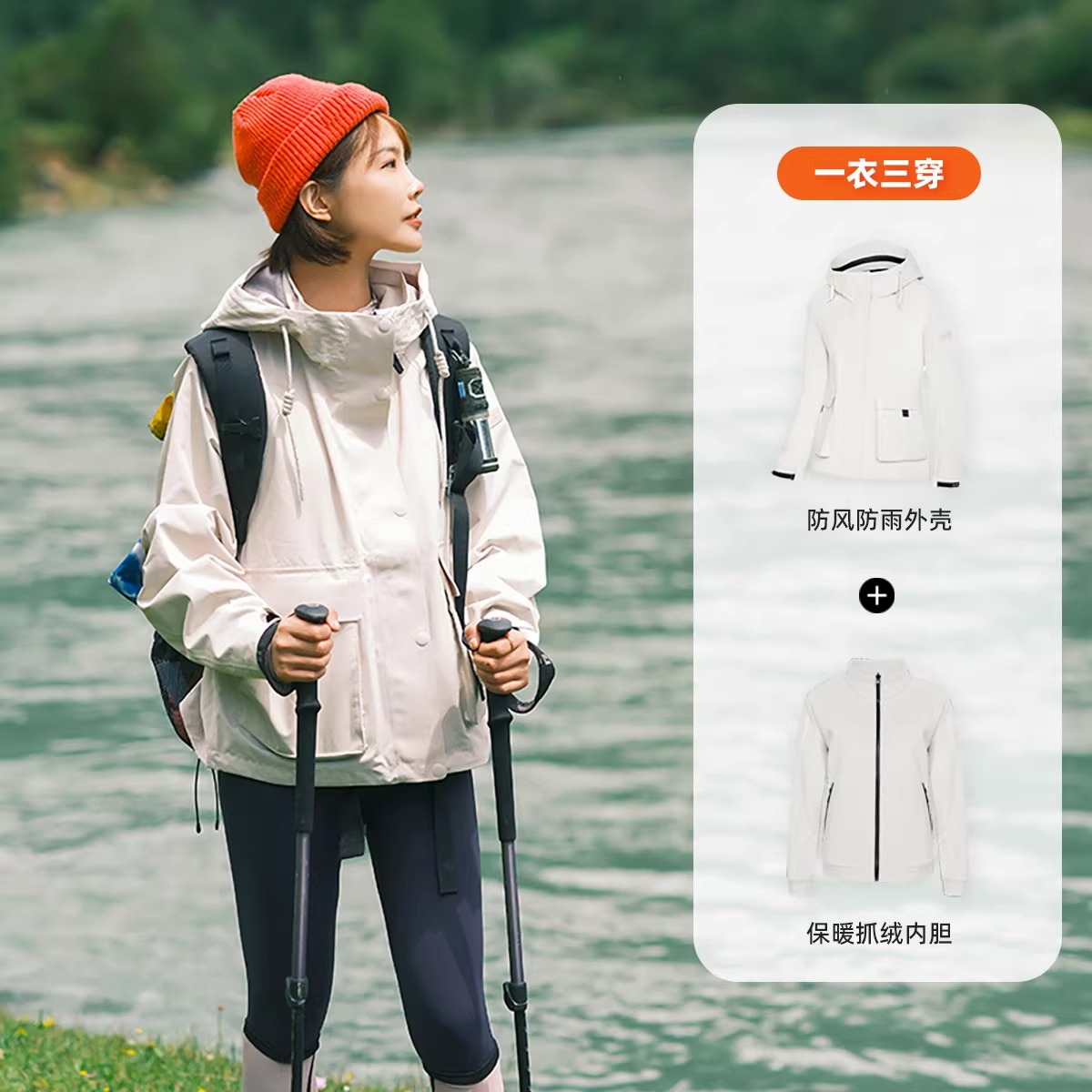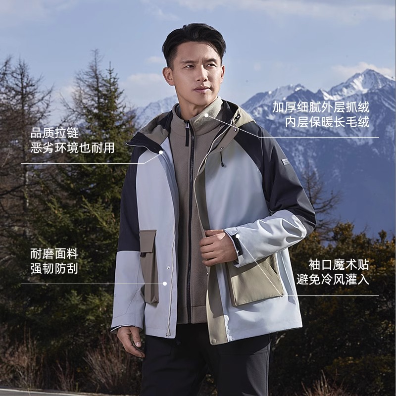 思凯乐户外冲锋衣男女三合一加厚抓绒内胆防水透气登山服F2404507