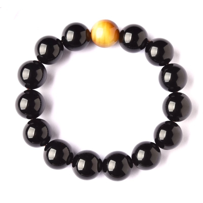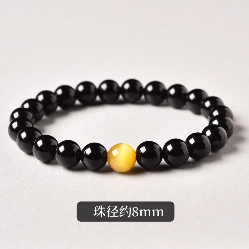 lisv男女天然黑曜石虎眼石手链乌金串珠黑色水晶手串普陀山金虎眼