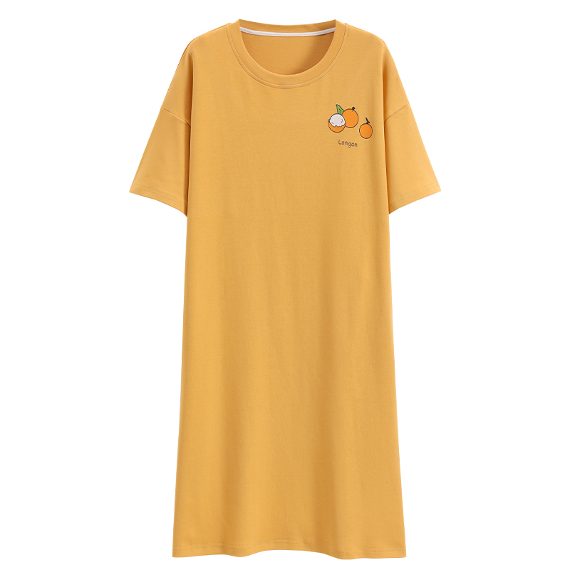 芬腾可安睡衣女夏季纯棉薄款甜美圆领睡裙短袖带胸垫可外穿家居服