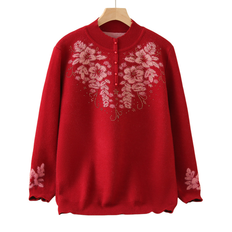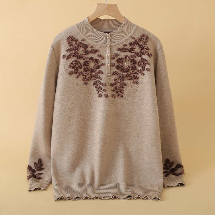 中老年加绒妈妈装毛衣加厚女士针织衫一体绒保暖打底上衣婆婆