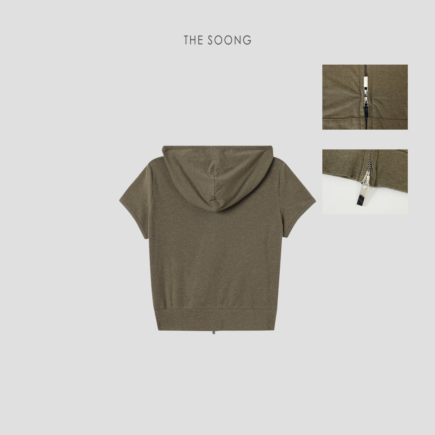 THESOONG/砂绿连帽衫 定染磨毛柔软短袖弹力卫衣开衫上衣女7627