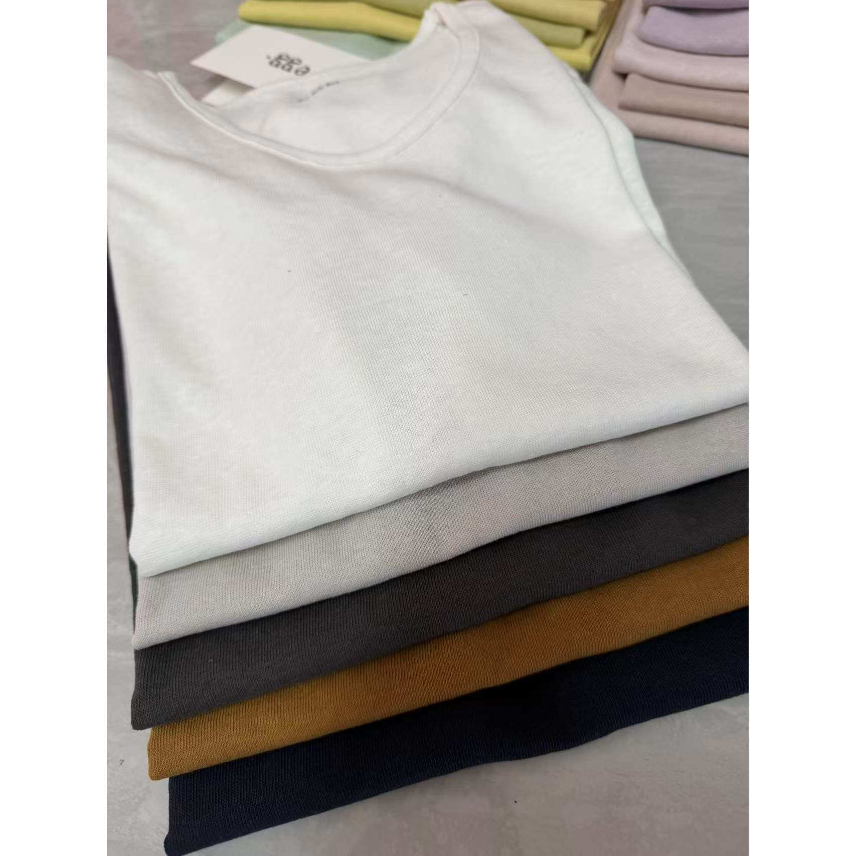 022021~「鹅蛋U领锁骨T」韩系!麻感棉U领显瘦女士短袖T恤