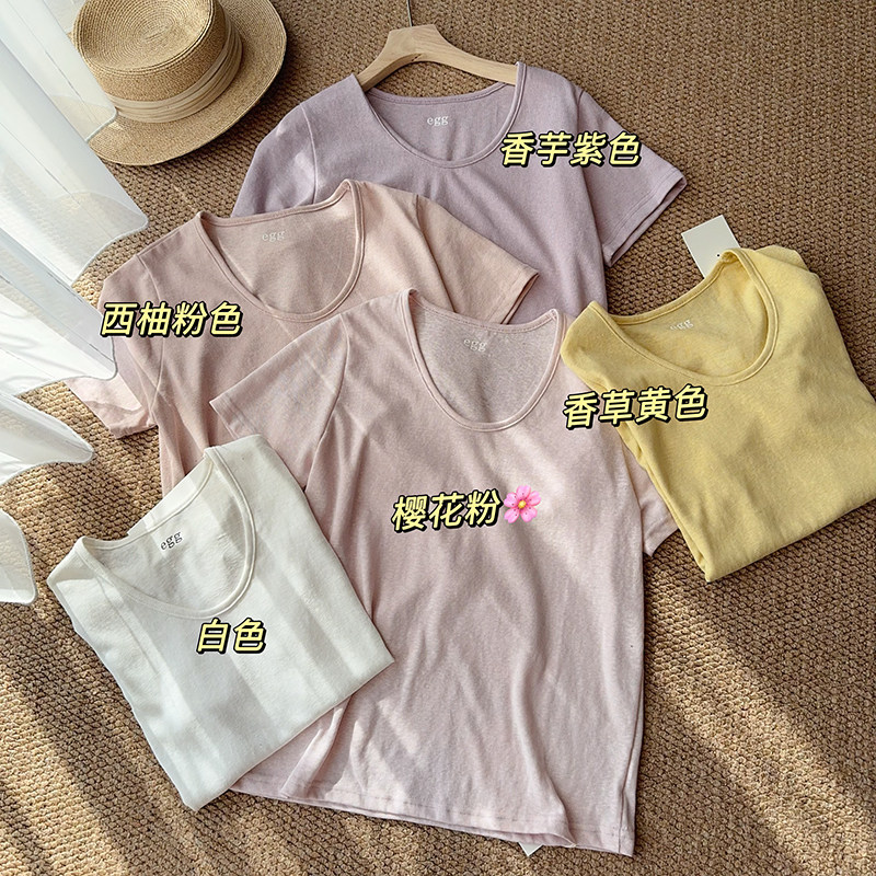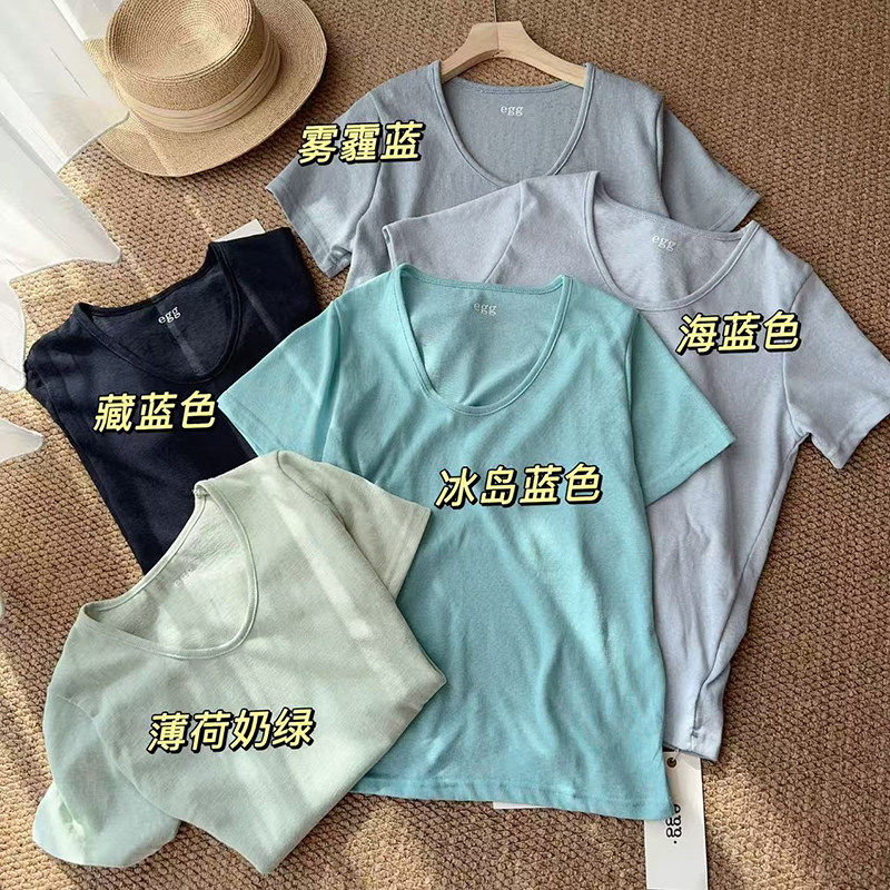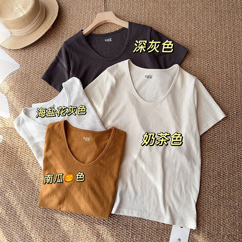 鹅蛋U领显瘦女士短袖T恤