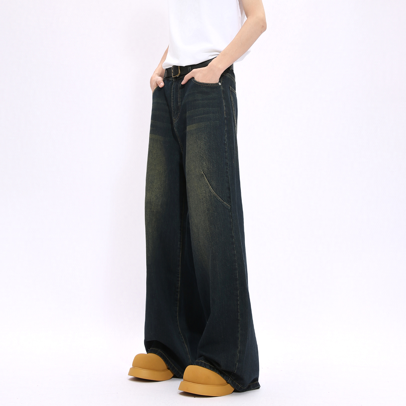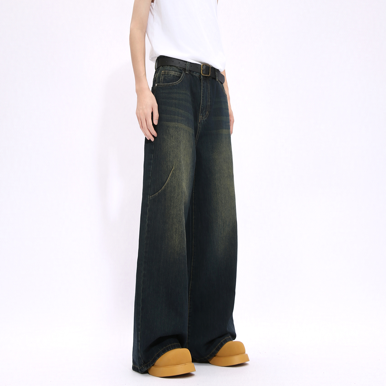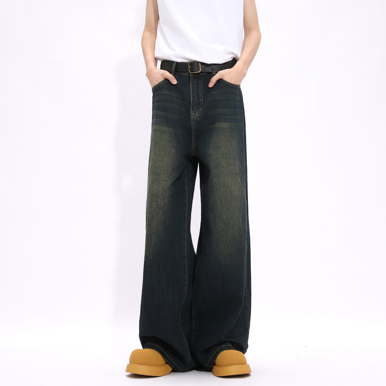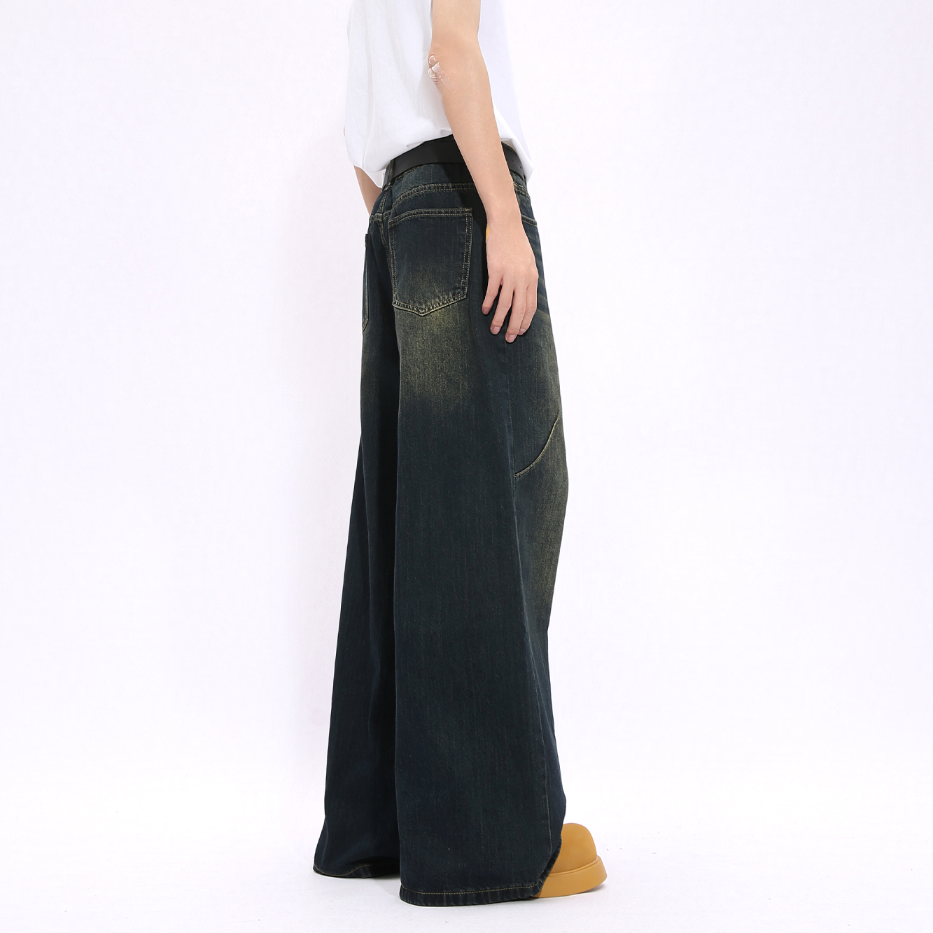 Voguo Relay 复古水洗做旧蓝牛仔裤设计立体裁剪阔腿拖地裤男女