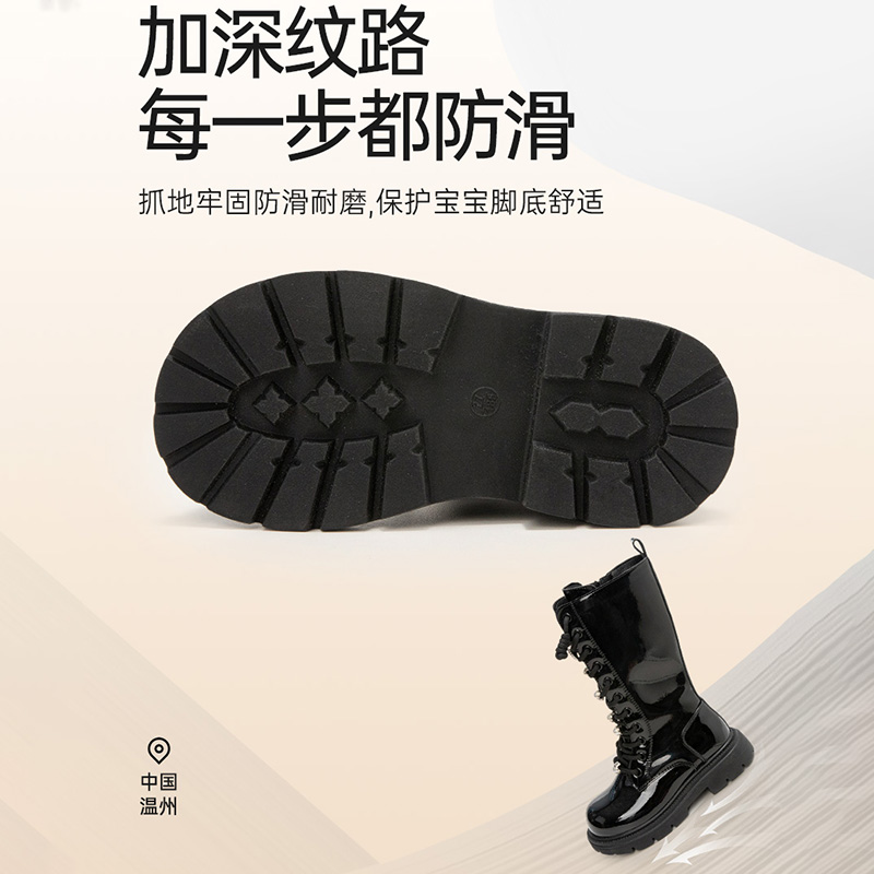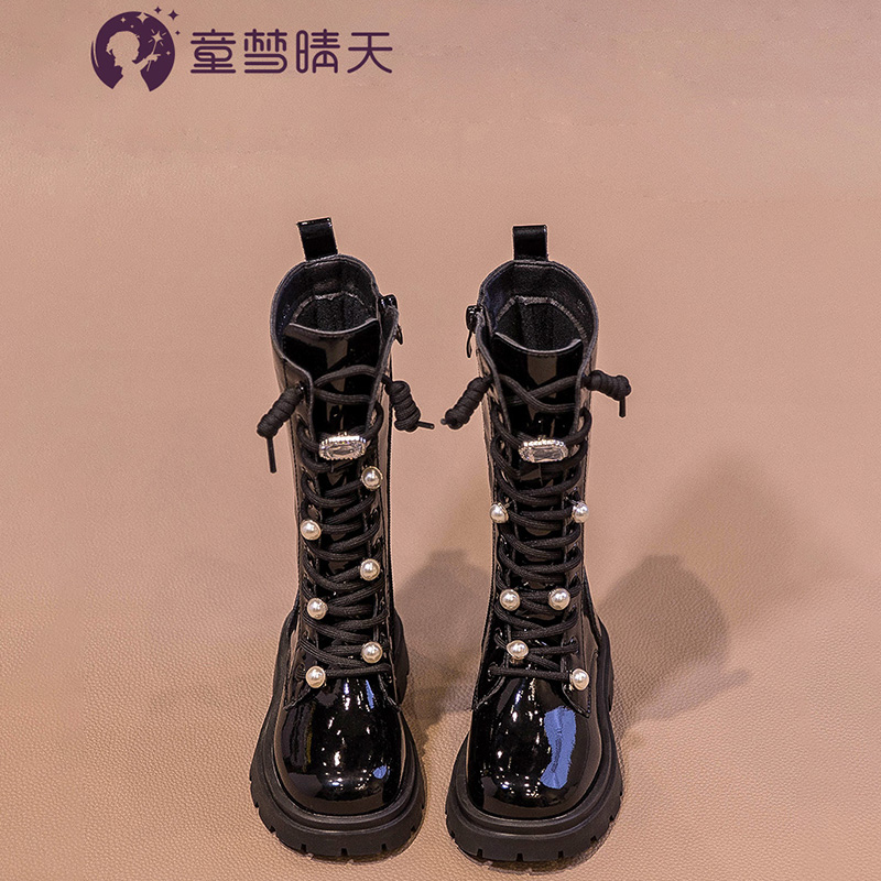 女童靴子秋季长筒靴2025新款儿童鞋长靴黑色马丁靴女宝宝高筒皮靴