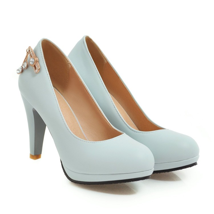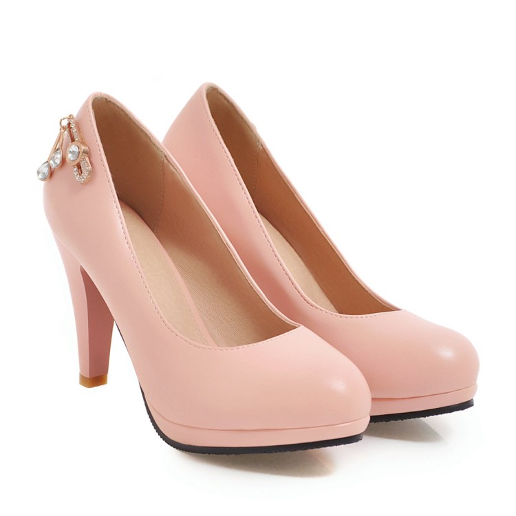 性感金属吊坠浅口水钻高跟鞋大码44 45 46 47大码超高跟单鞋40-43