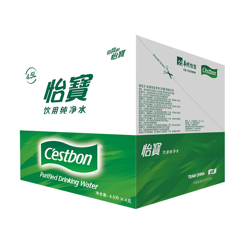 怡宝饮用水纯净水非矿泉水家庭用水煲汤泡茶4.5L*4桶/箱整箱
