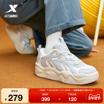 特步吐司鞋男鞋板鞋冬季新款男士革面保暖休闲鞋厚底增高运动鞋子