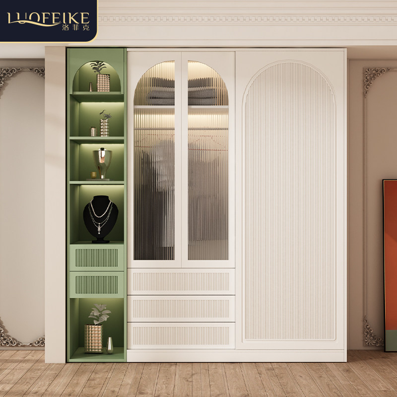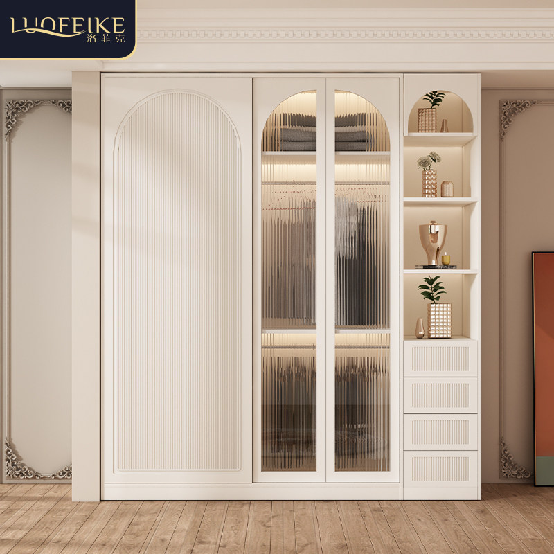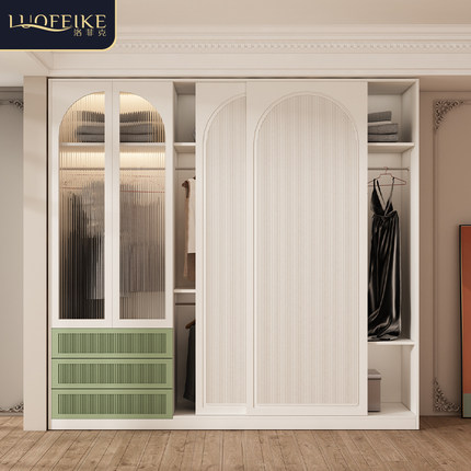 拉门衣柜家用卧室欧式小户w型实木整体移门大衣橱一门到顶收纳柜