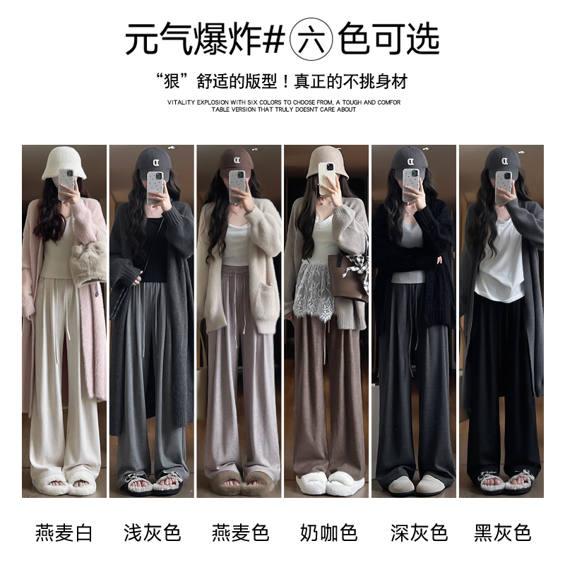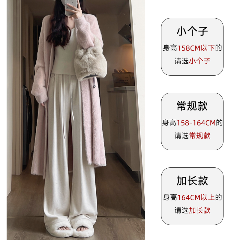 白色加绒糯米裤女2025新款秋冬小个子直筒裤垂感慵懒感羊绒阔腿裤