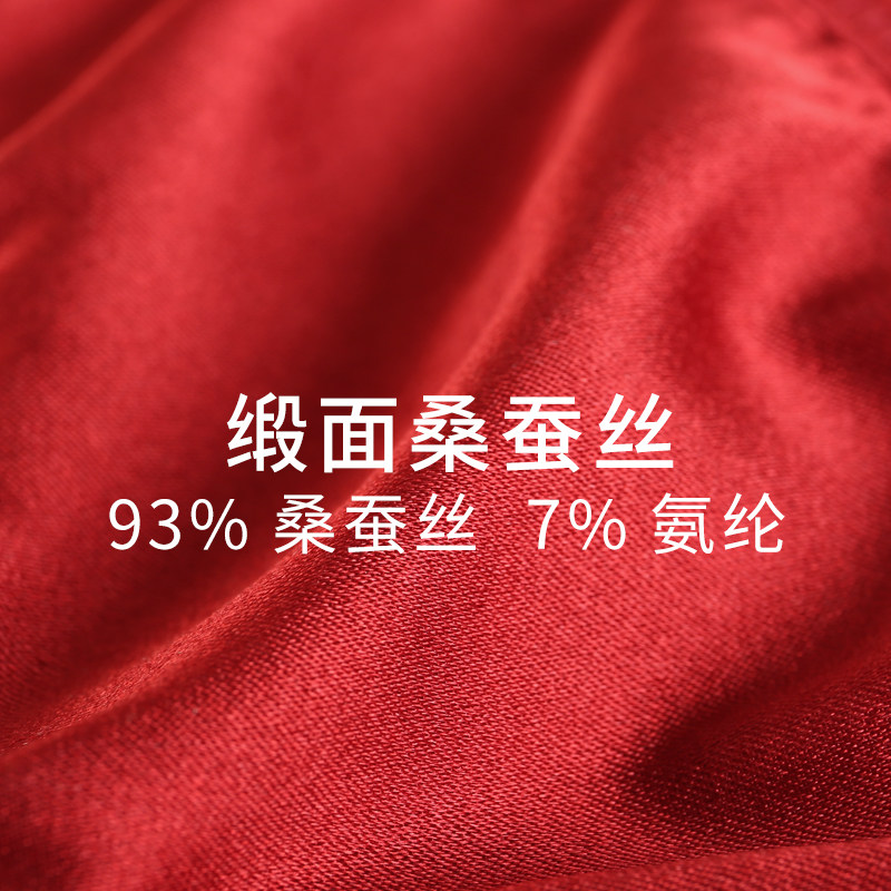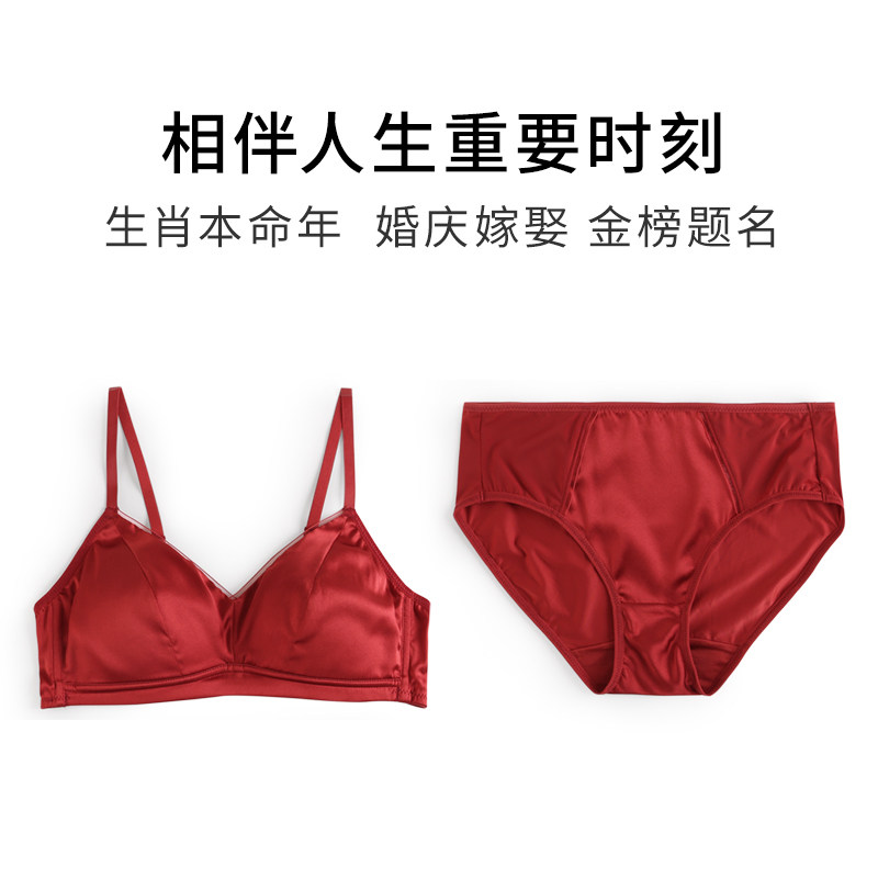 红色内衣女里外桑蚕丝缎面无钢圈法式胸罩新年本命年文胸内裤套装